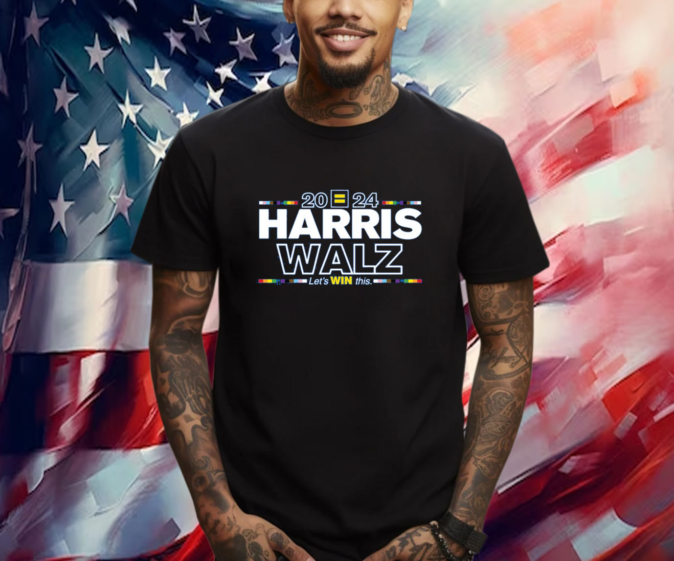Vibrant, eye-catching design featuring the “Harris Walz 2024” logo