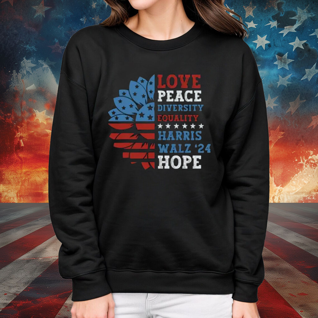 Harris Walz 2024 Peace Love Equality Diversity Hope Shirt