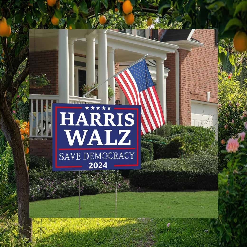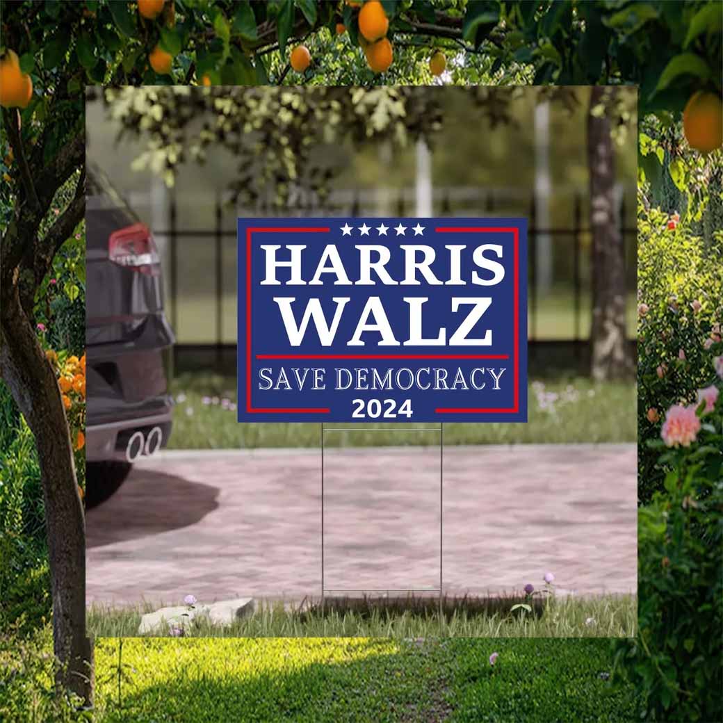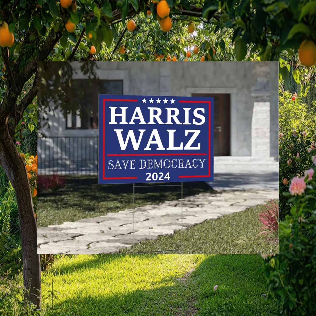 Join the movement to save democracy. Order your Harris Walz 2024 Save Democracy Yard Sign today and let your voice be heard!