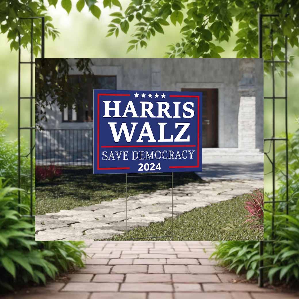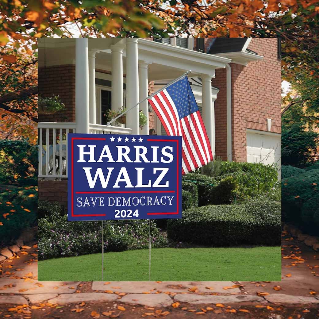 Join the movement to save democracy. Order your Harris Walz 2024 Save Democracy Yard Sign today and let your voice be heard!