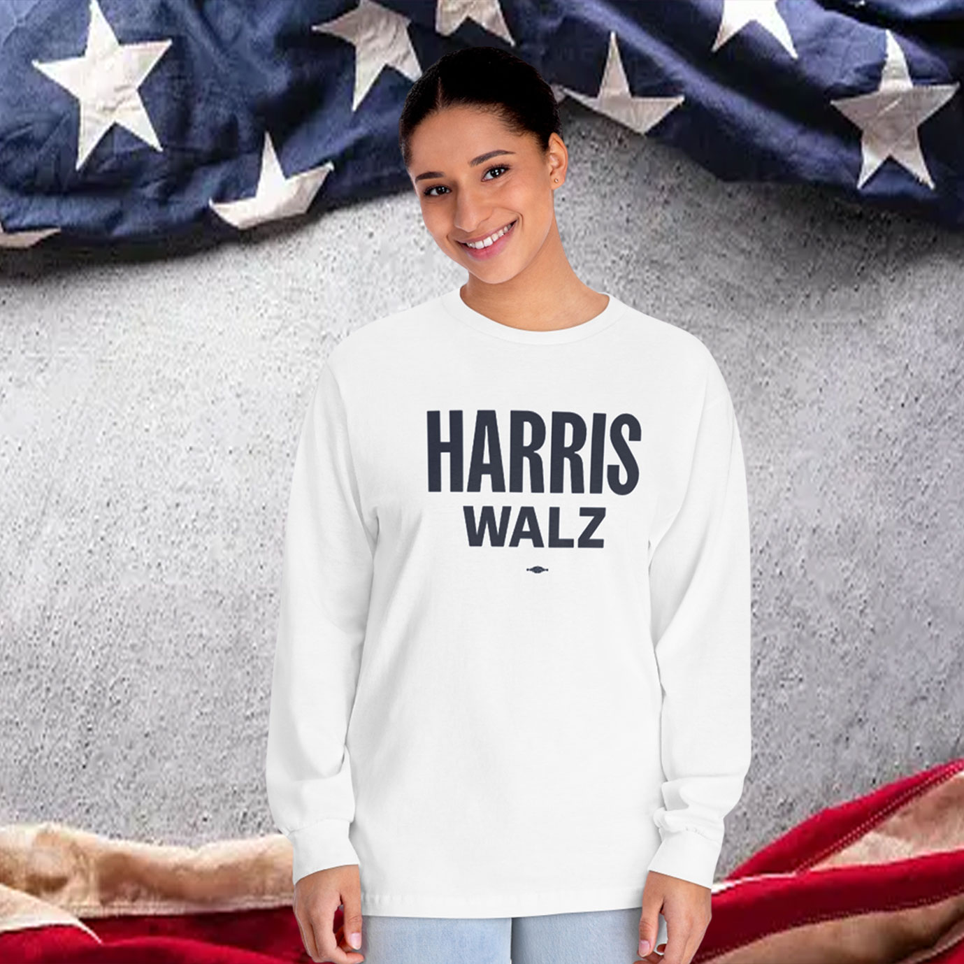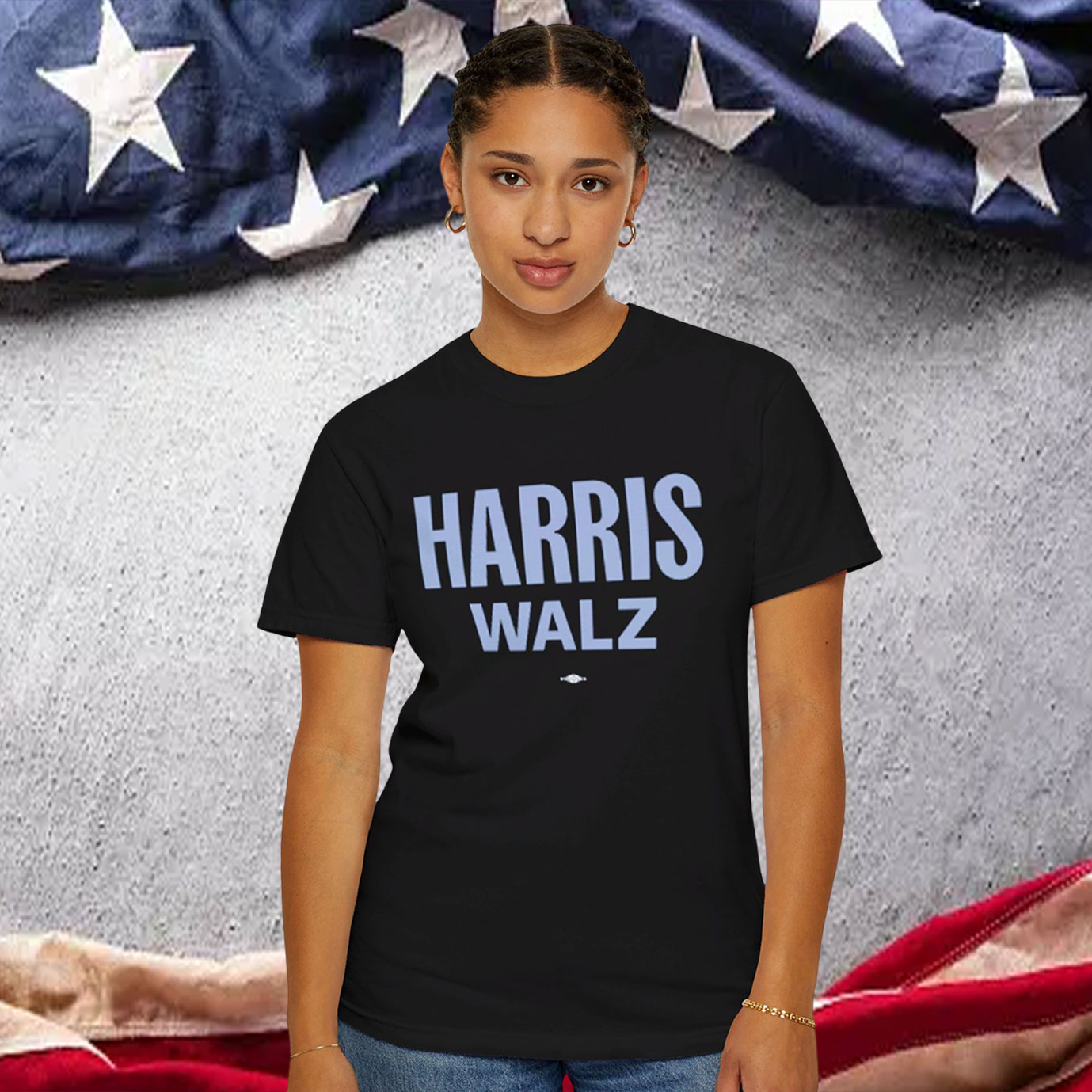 Bold “Harris Walz 2024” print for a powerful statement