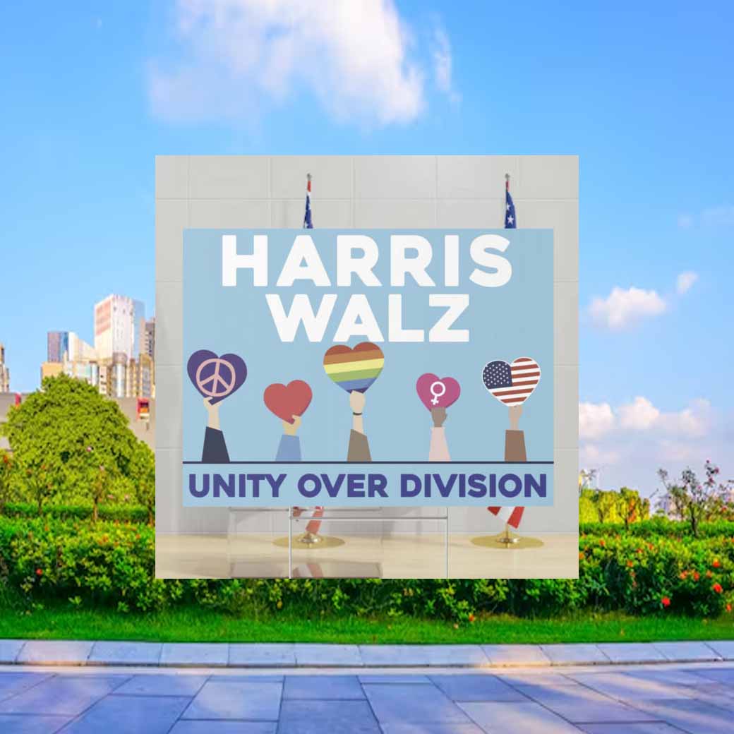 Join the movement for unity and order your Harris Walz 2024 Unity Over Division Yard Sign today. Together, we can create a future where everyone feels valued and respected.