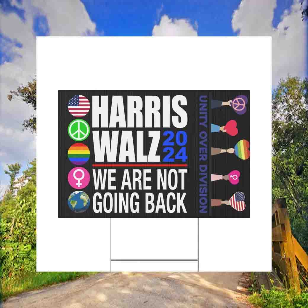 Harris Walz 2024 We Are Not Going Back, Unity Over Division Yard Sign