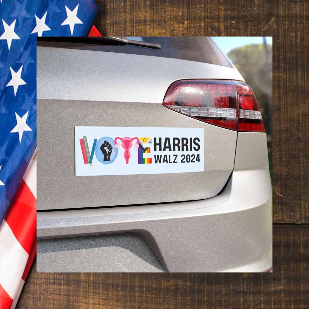 Make a statement with the Harris Walz 24″ Vote Bumper Car Magnet. This high-impact magnet is designed to proudly display your political affiliation on your vehicle, ensuring maximum visibility and impact.