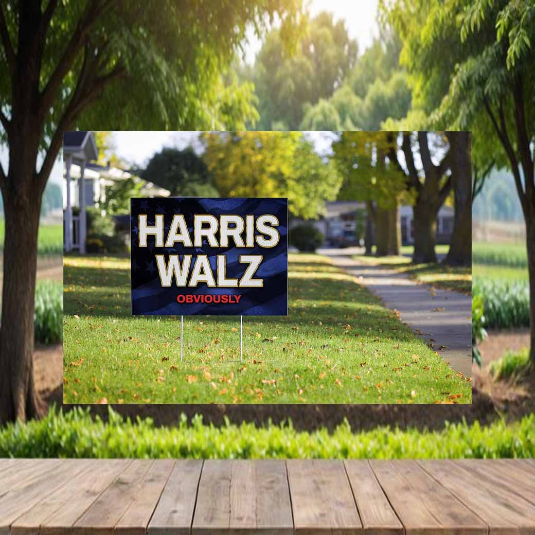 Make a statement with the Harris Walz Obviously 24 Yard Sign, a vibrant and durable display that proudly proclaims your support for the candidate of your choice.