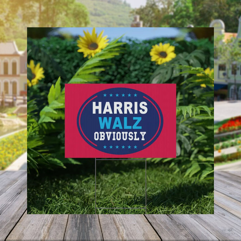 Harris Walz Obviously – Kamala Harris for President Election Yard Sign – Plastic Yard Sign