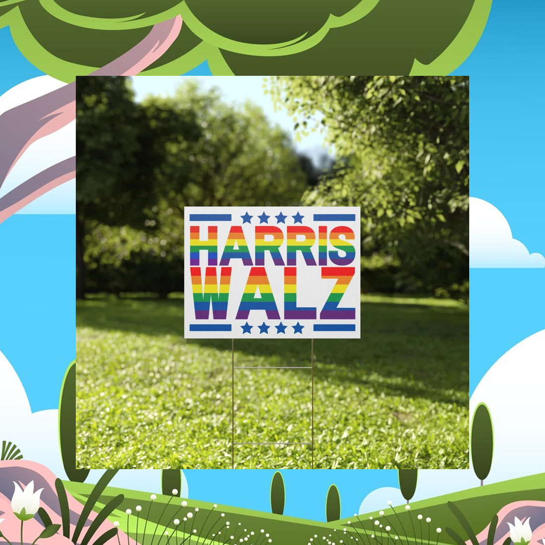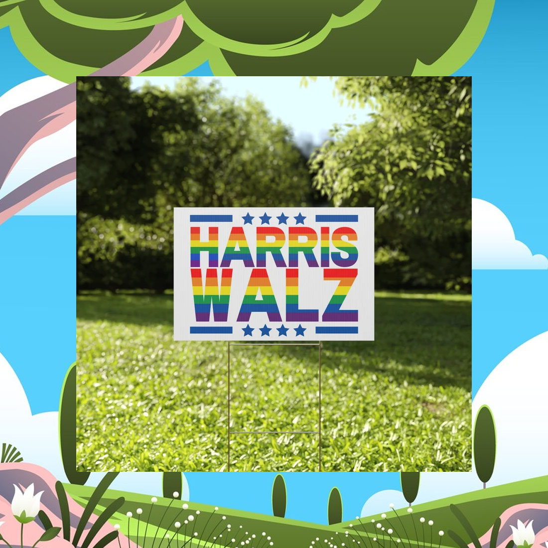 The Harris Walz Rainbow with Blue Stars Yard Sign is an exceptional value that offers: