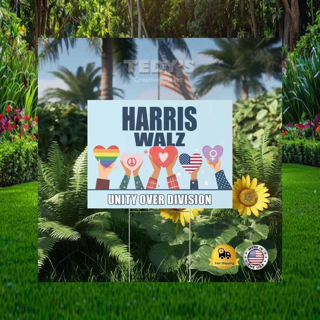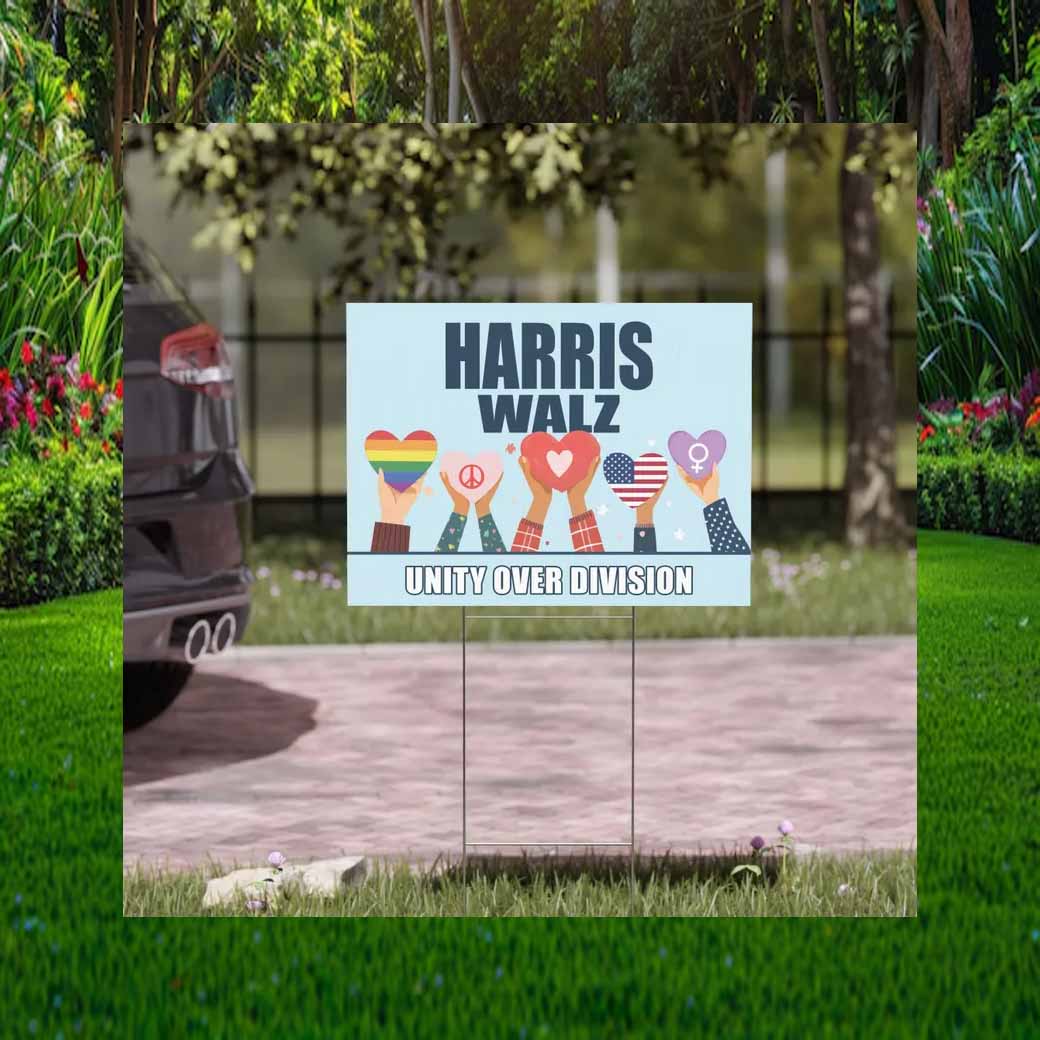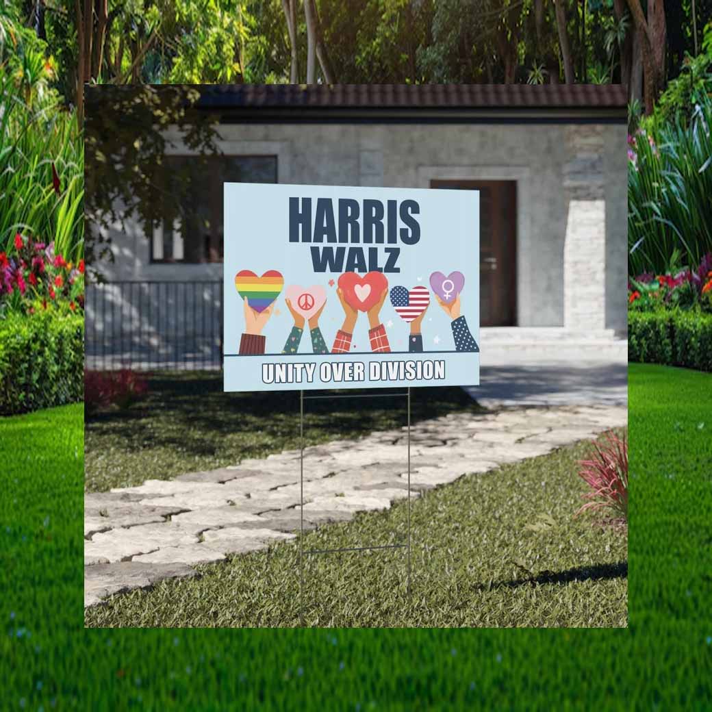 The Harris Walz Unity Over Division Yard Sign is more than just a sign; it’s a symbol of hope, unity, and the power of community. By displaying this sign, you not only make a statement but also contribute to a positive and inclusive environment.