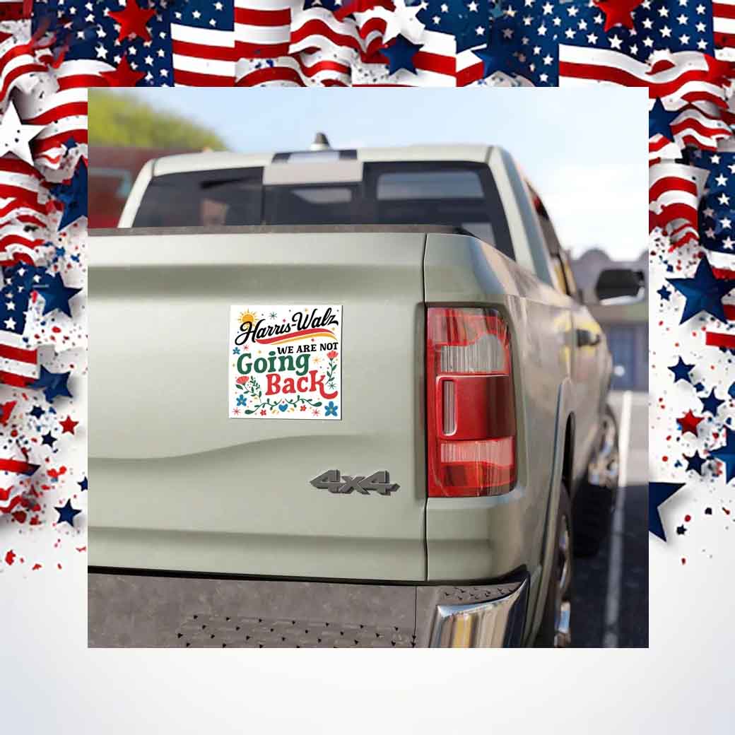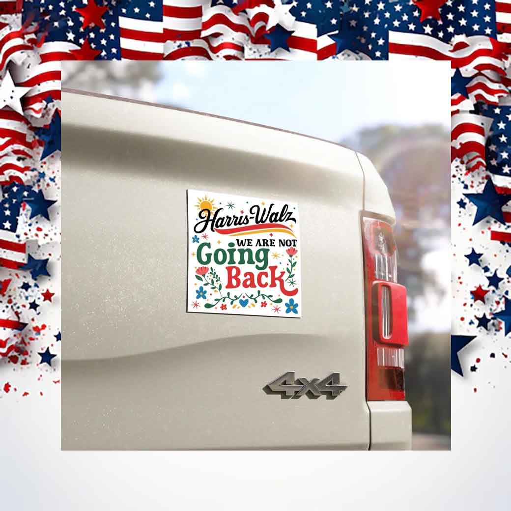 Join the movement and make your voice heard. Order your Harris Walz “We Are Not Going Back” car magnet today and show the world that you are not going to give up the fight for a better future.