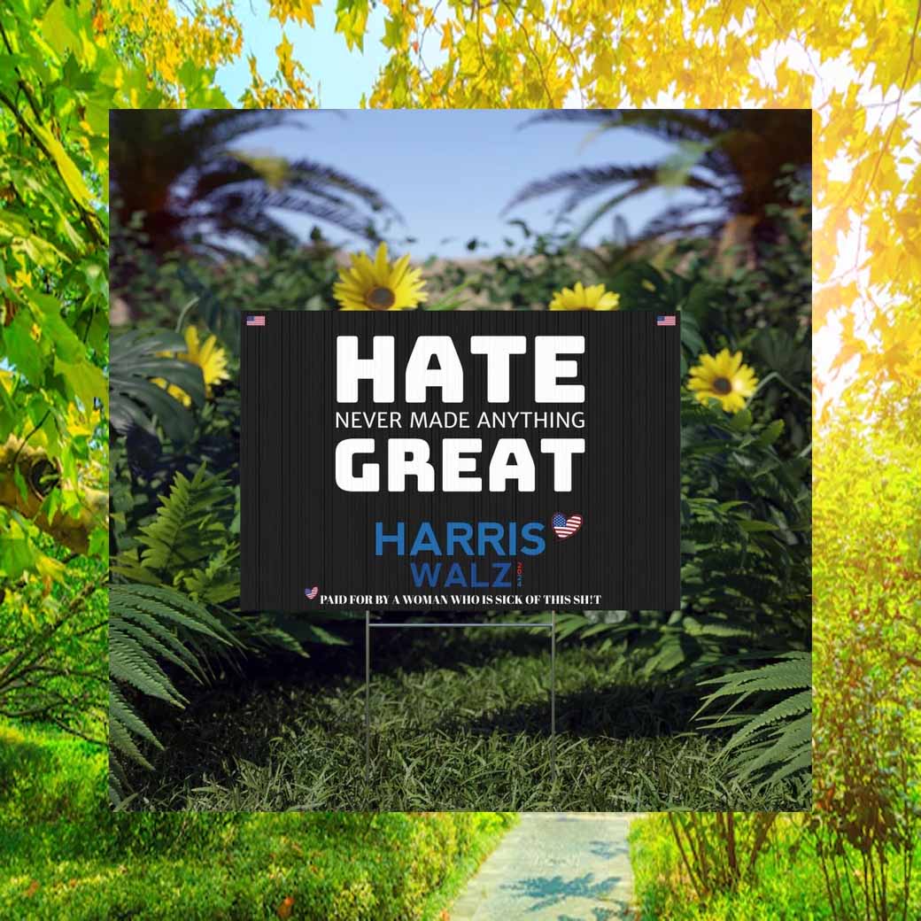 Join the movement for a better tomorrow. Order your “Hate Never Made Anything Great” Harris Walz 2024 yard sign today and let your voice be heard. Together, we can create a future where unity and progress prevail.