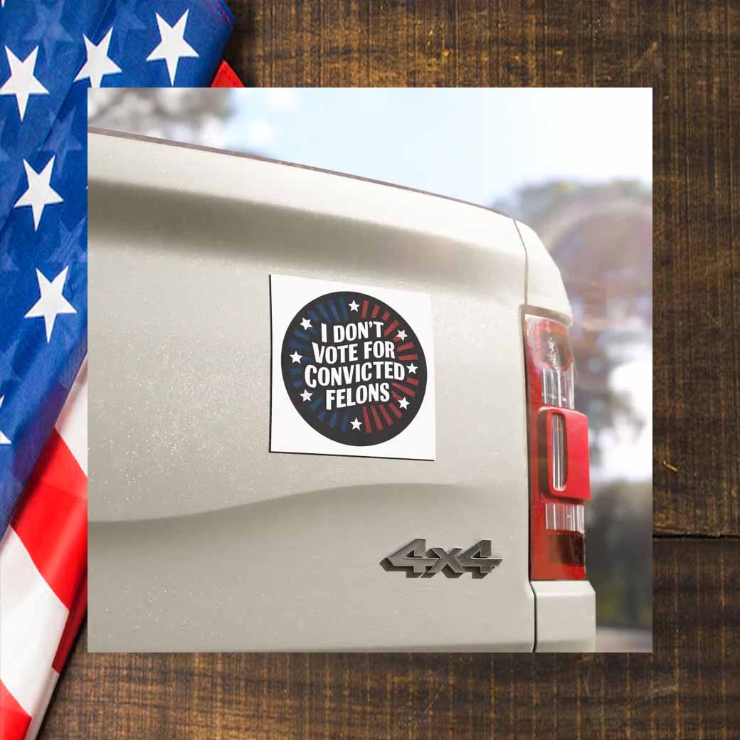Order your “I Don’t Vote for Convicted Felons” car magnet today and proudly display your unwavering commitment to justice and accountability. Let your voice be heard and make a difference in your community.