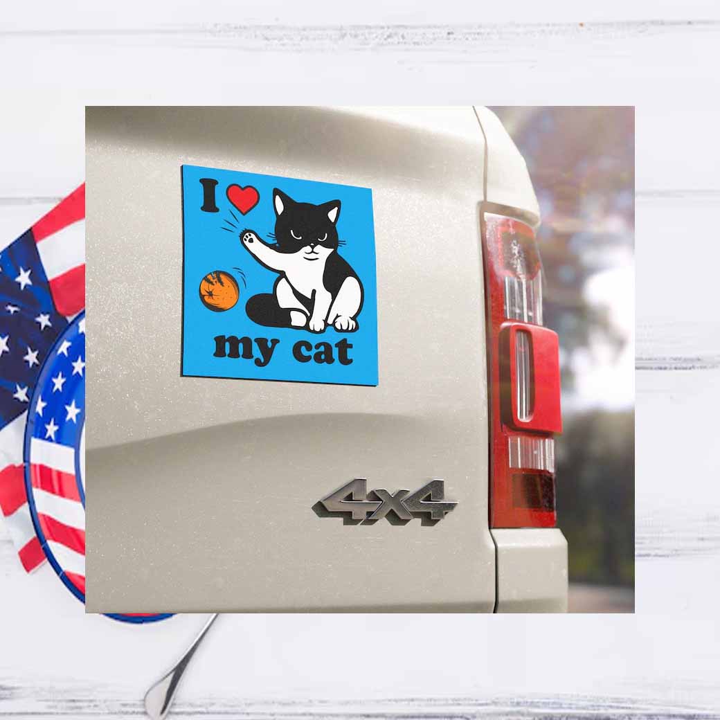 Our “I Love My Cat” car magnet is not just a decoration; it’s a statement of your love for your feline friend. It’s a way to show the world your passion for cats and add a touch of joy to your daily commute.