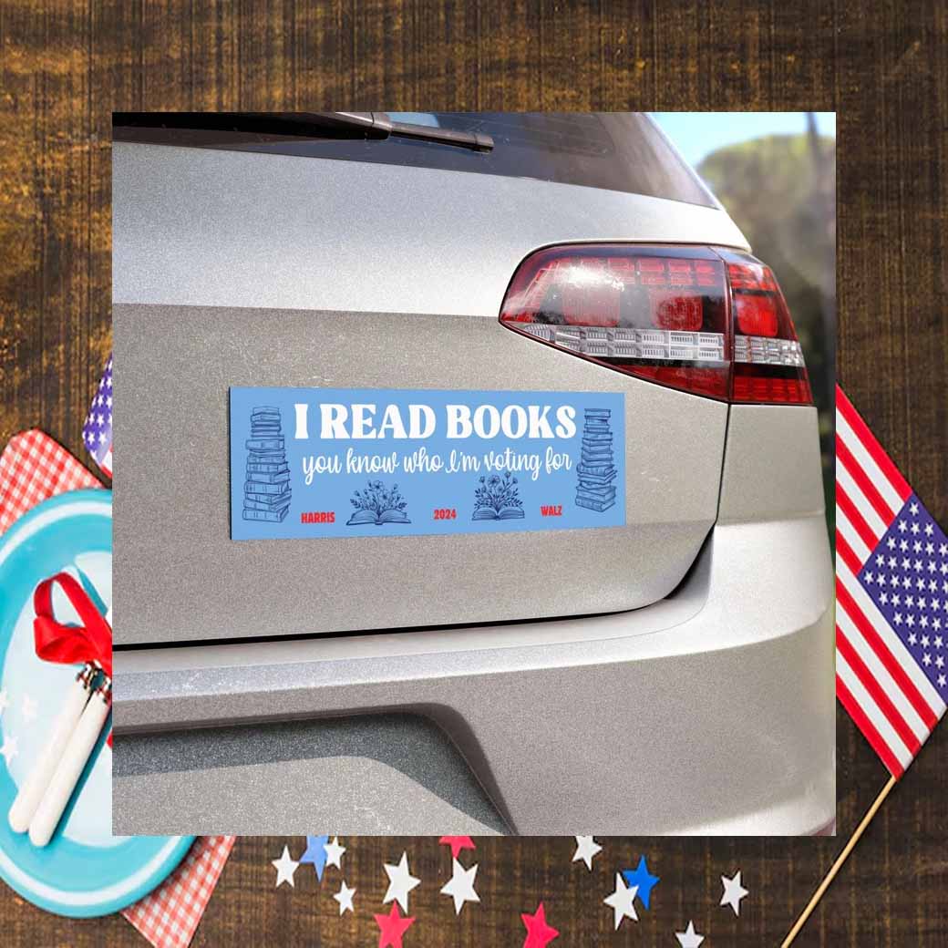 I Read Book You Know Who I’m Voting For Harris Walz 2024 Car Magnet