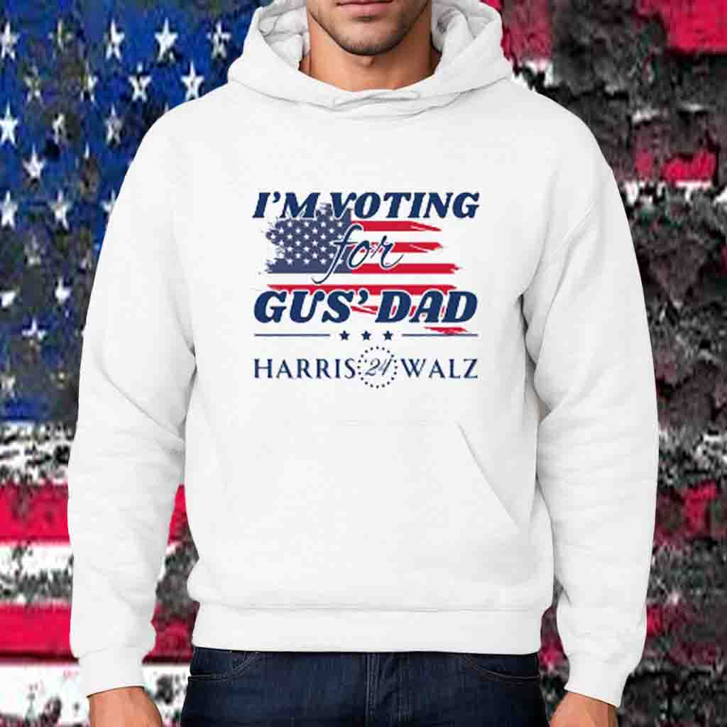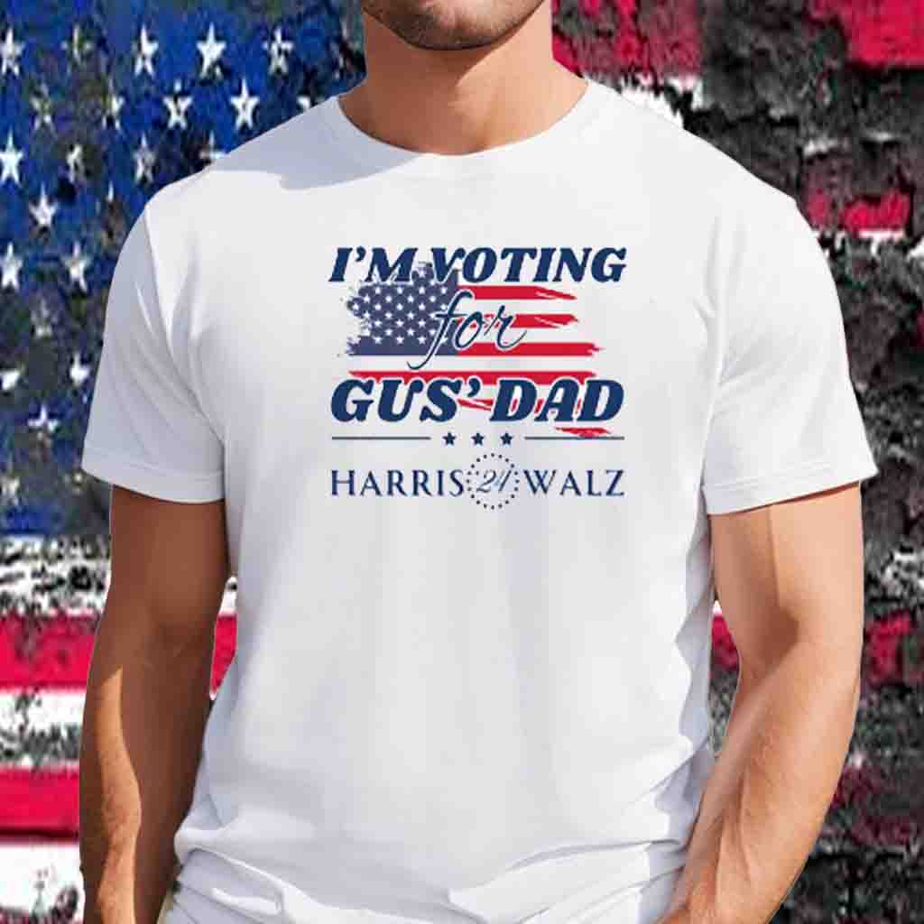 Featuring a bold and eye-catching design, the shirt proudly displays the slogan “I’m Voting for Gus’ Dad 24” in vibrant colors. The design is printed using state-of-the-art technology, guaranteeing its durability and longevity.