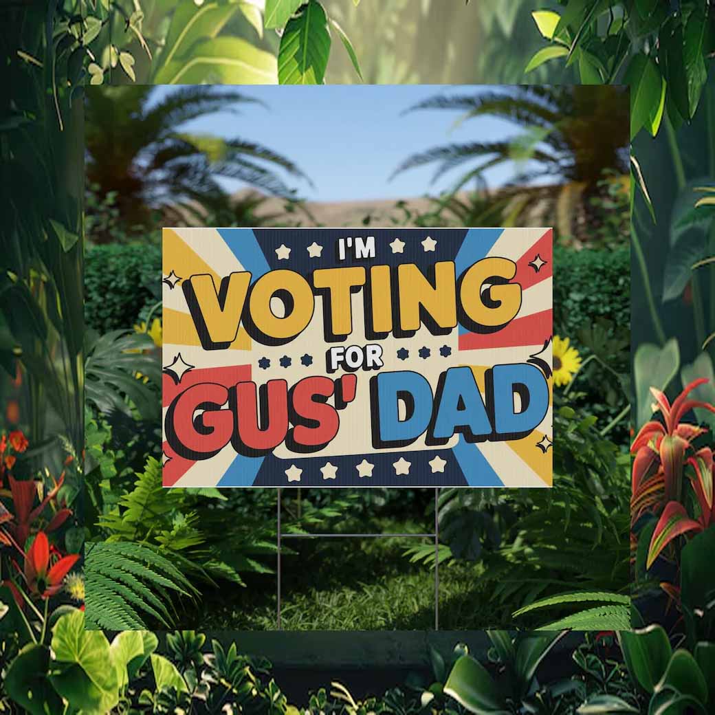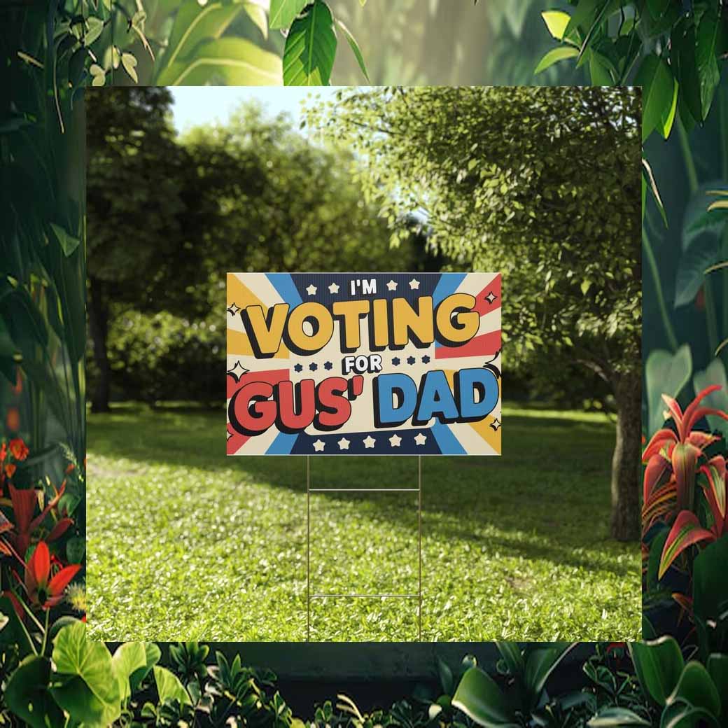 I’m Voting For Gus’ Dad Plastic Yard Sign