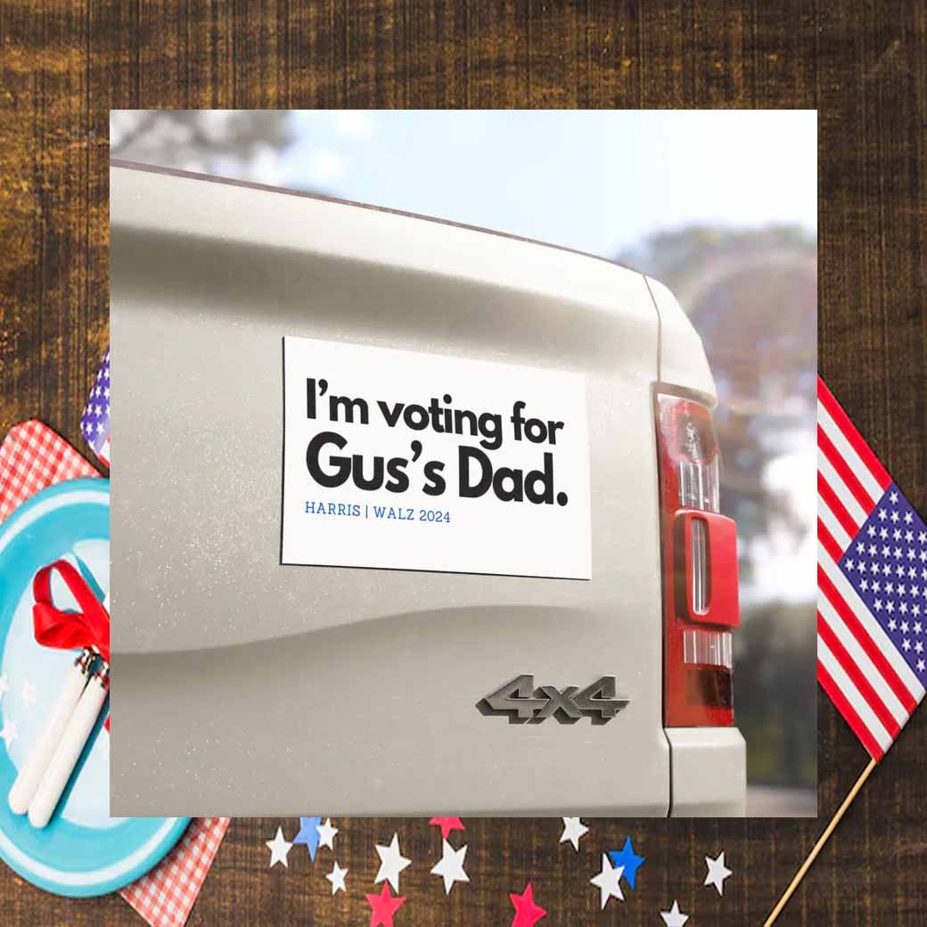 Join the movement and show your support for Harris Walz with this I’m Voting for Gus’s Dad Car Magnet. It’s a small but powerful way to make a big difference in the upcoming election.