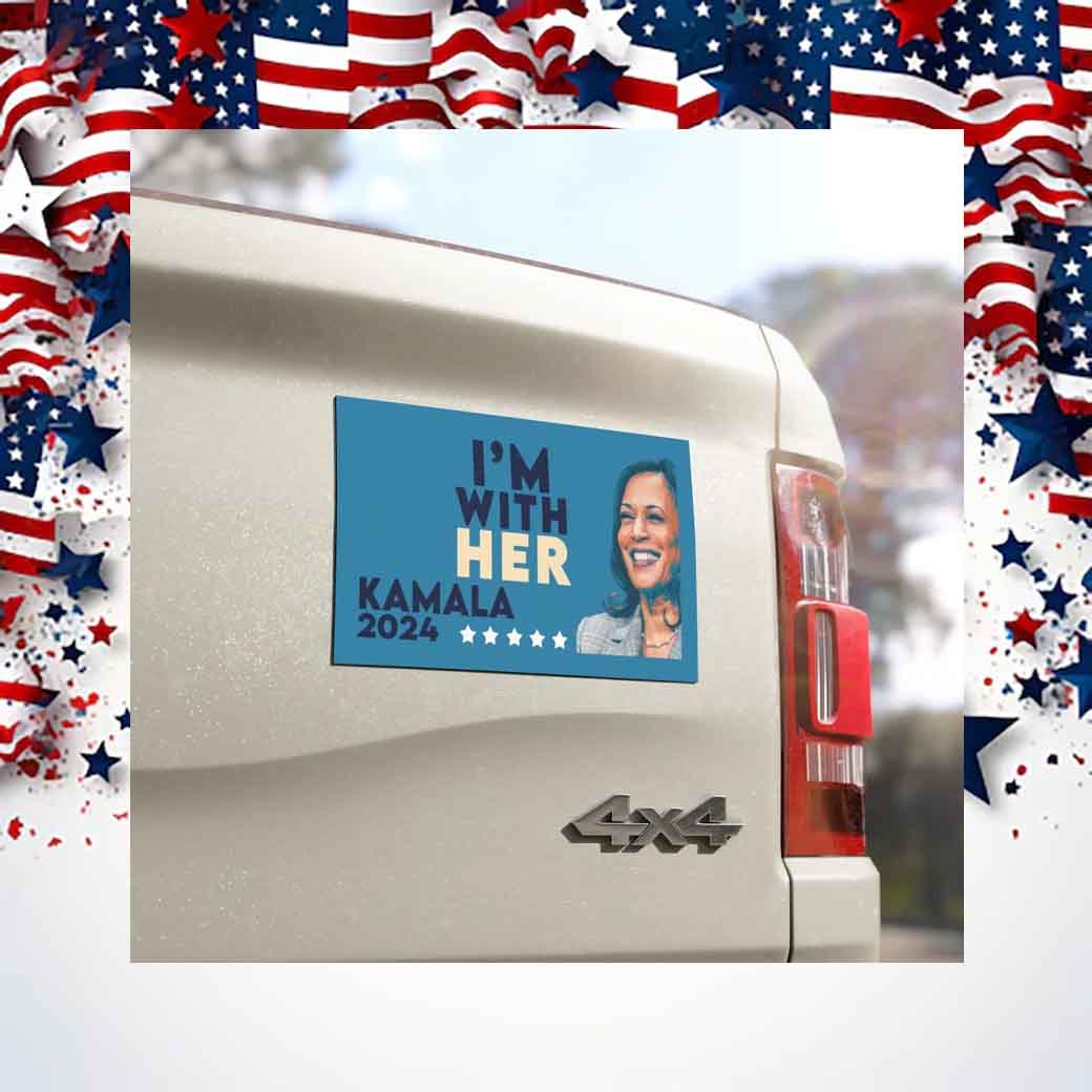 As Kamala Harris continues to make history, our “I’m With Her” car magnet empowers you to be a part of her legacy. Whether you’re driving to work, running errands, or attending rallies, this magnet will proudly display your support for a leader who embodies strength, resilience, and the unwavering belief that anything is possible.