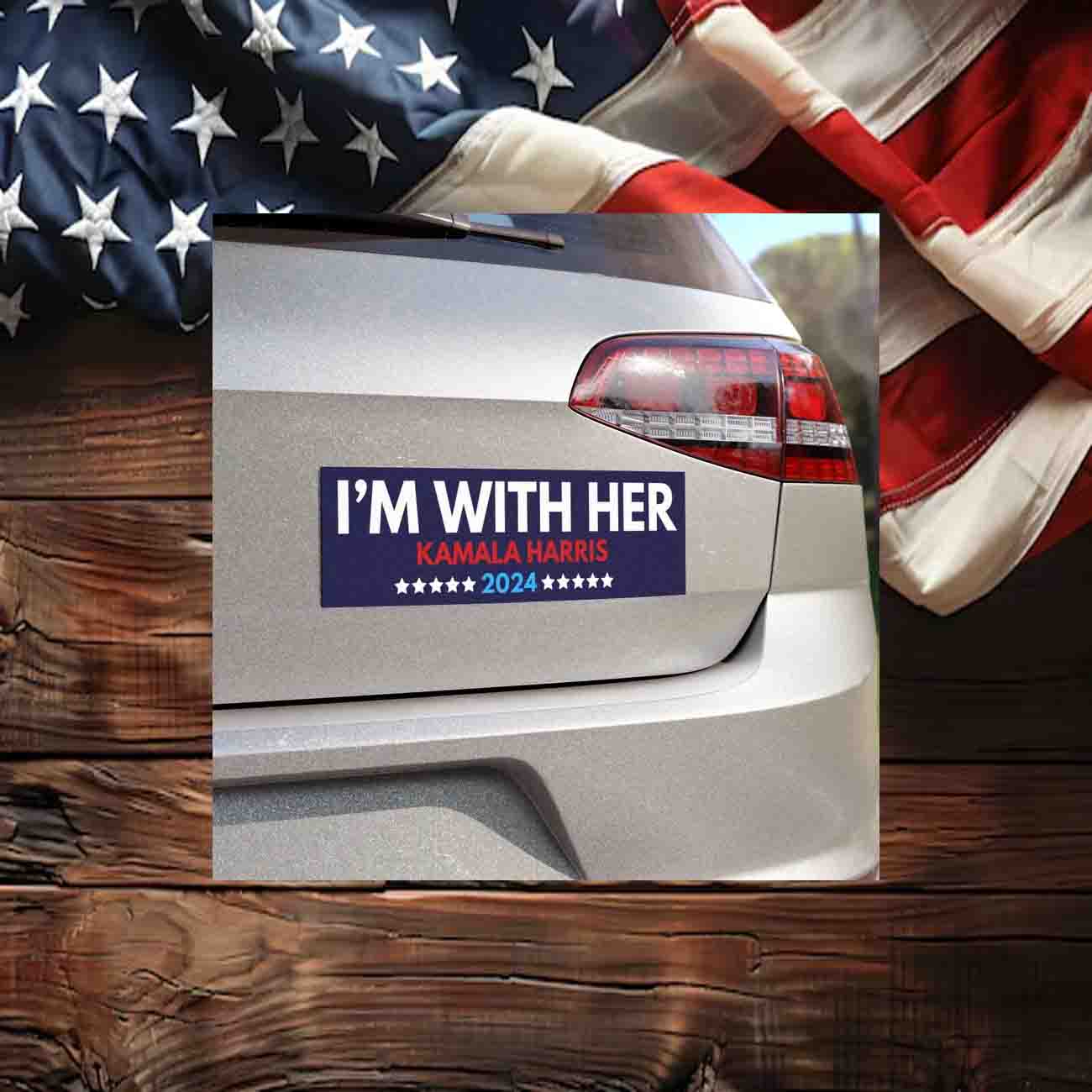 Join the movement and show your support for Kamala Harris with this I’m With Her car magnet. Order yours today and let your vehicle speak volumes about your values and beliefs.
