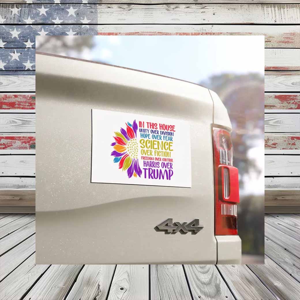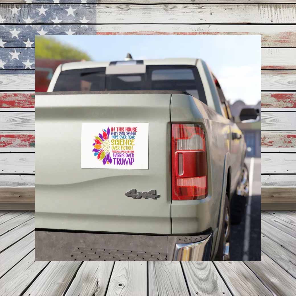 Join the movement and show your support for Kamala Harris with this In This House We Vote For Kamala Bumper Car Magnet. Order yours today and let your voice be heard!