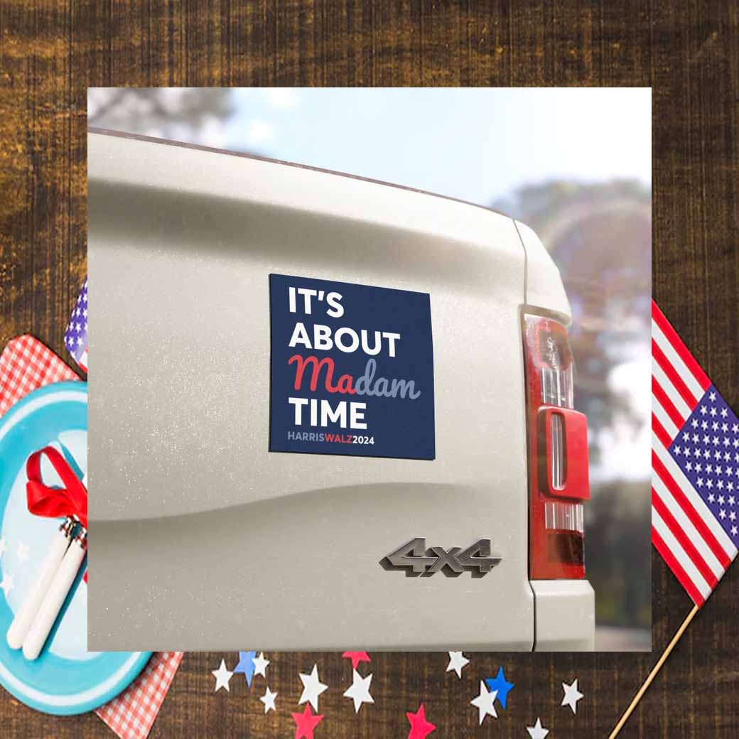 Join the movement for change and order your It’s About Madam Time Harris Walz Car Magnet today. Let’s celebrate the achievements of this remarkable woman and continue to strive for a more just and equitable society.