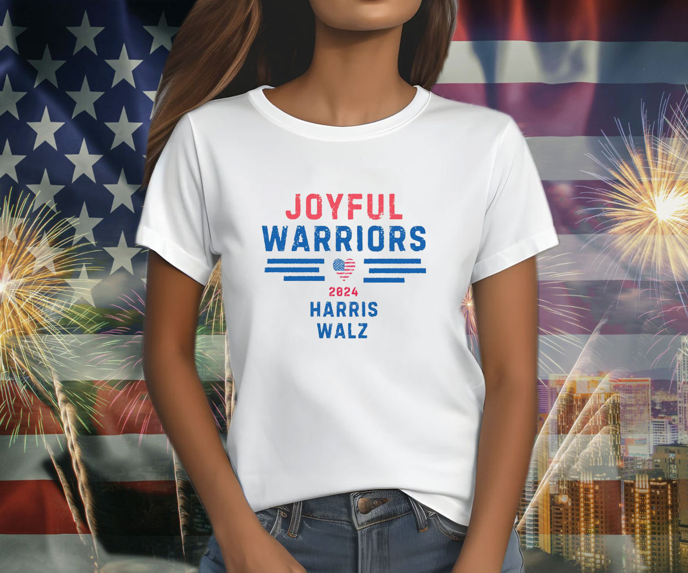Join the Joyful Warriors movement and show your unwavering support for Kamala Harris in the 2024 US Election. This exclusive T-shirt is a powerful symbol of unity, hope, and the unwavering belief in a brighter future.