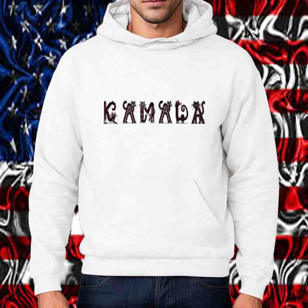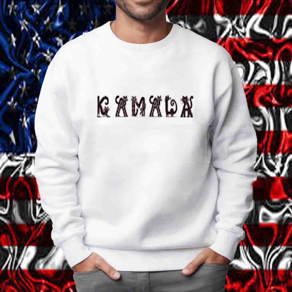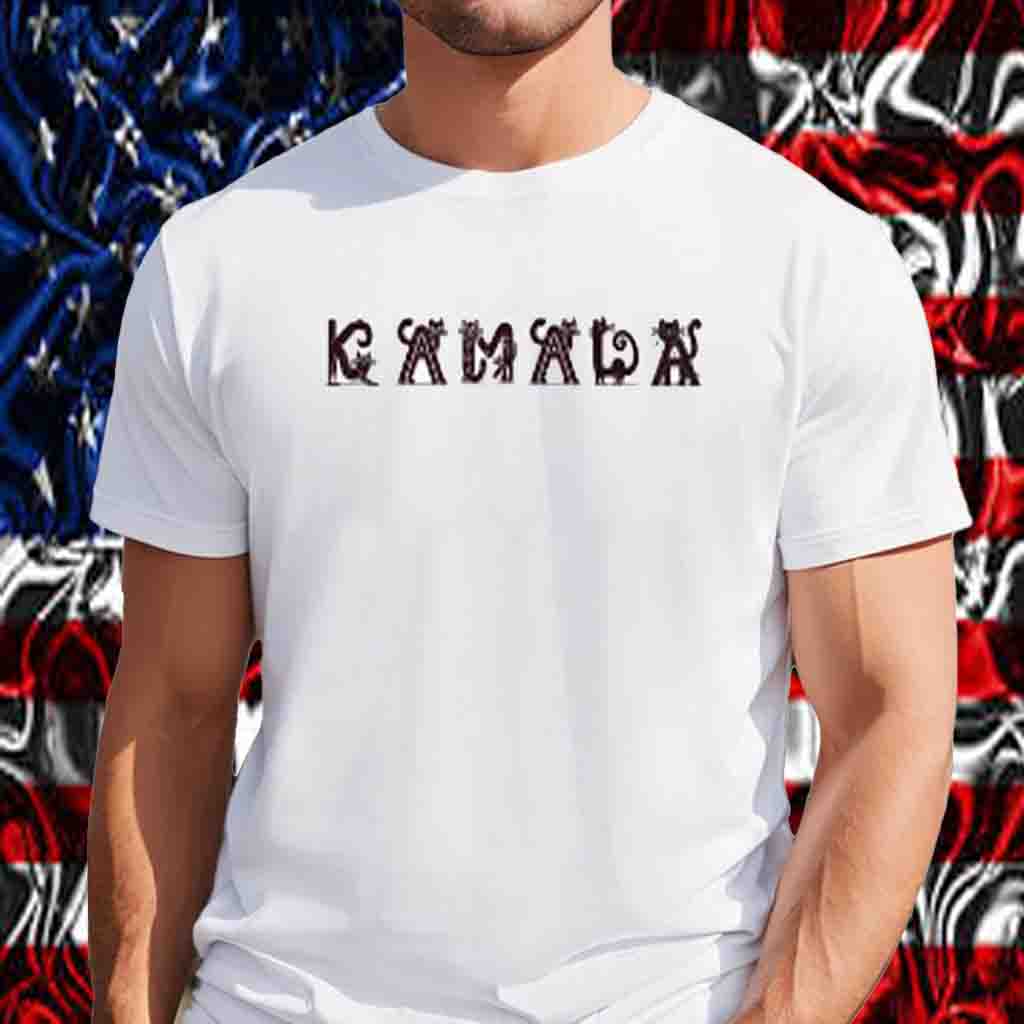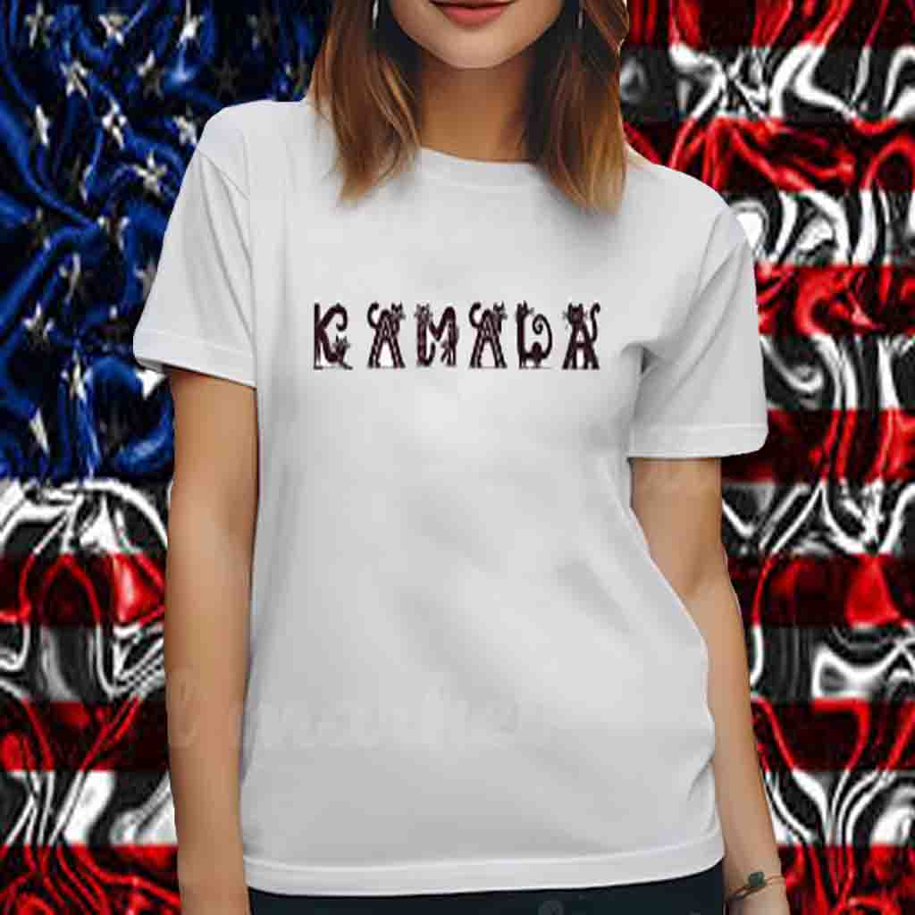 Vibrant print featuring a playful cat silhouette and the iconic “Kamala” logo