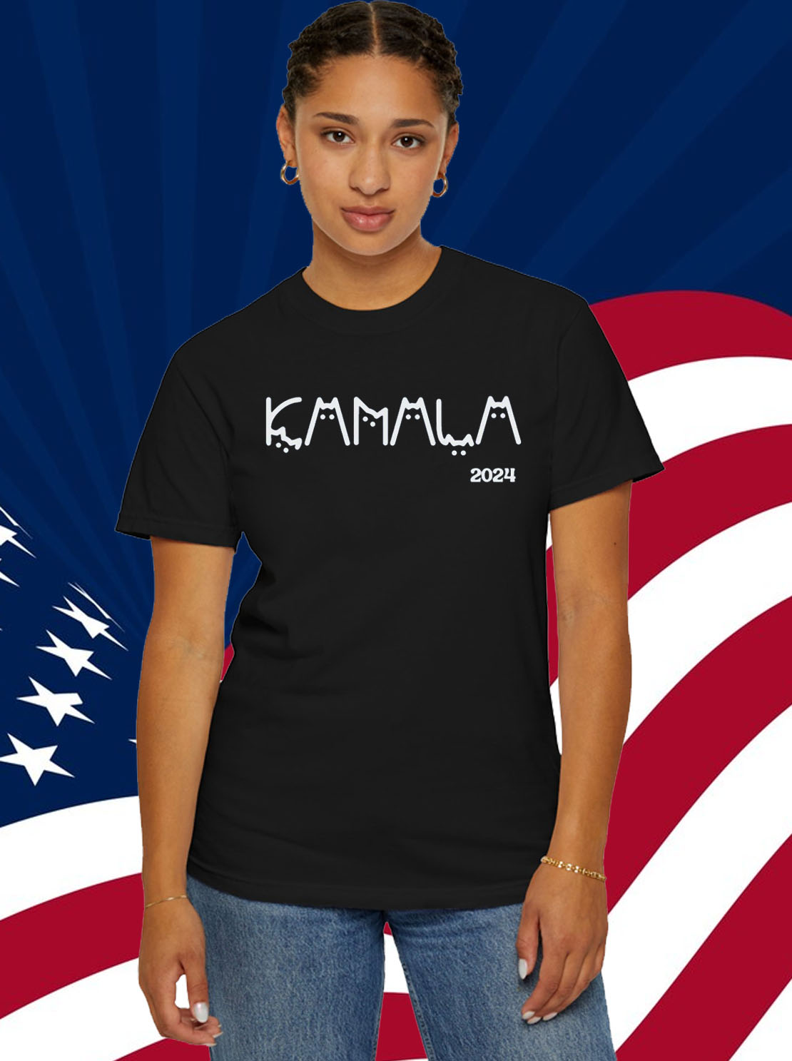 Calling all cat-loving, Kamala-supporting ladies! Our exclusive Kamala Cat Sweatshirt is the purr-fect way to show your love for both your feline friend and your favorite politician.