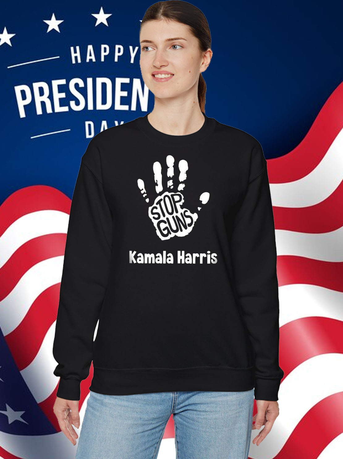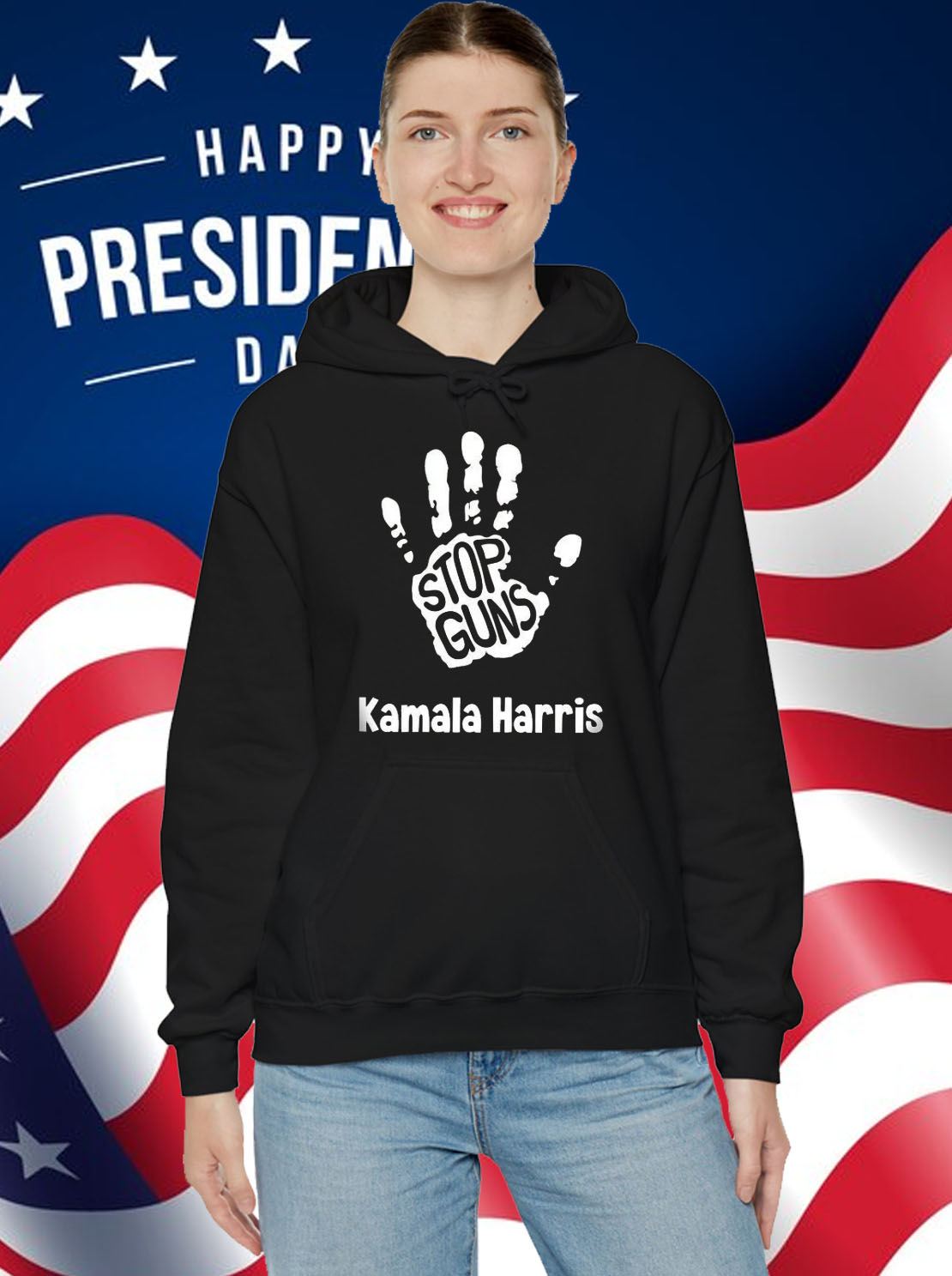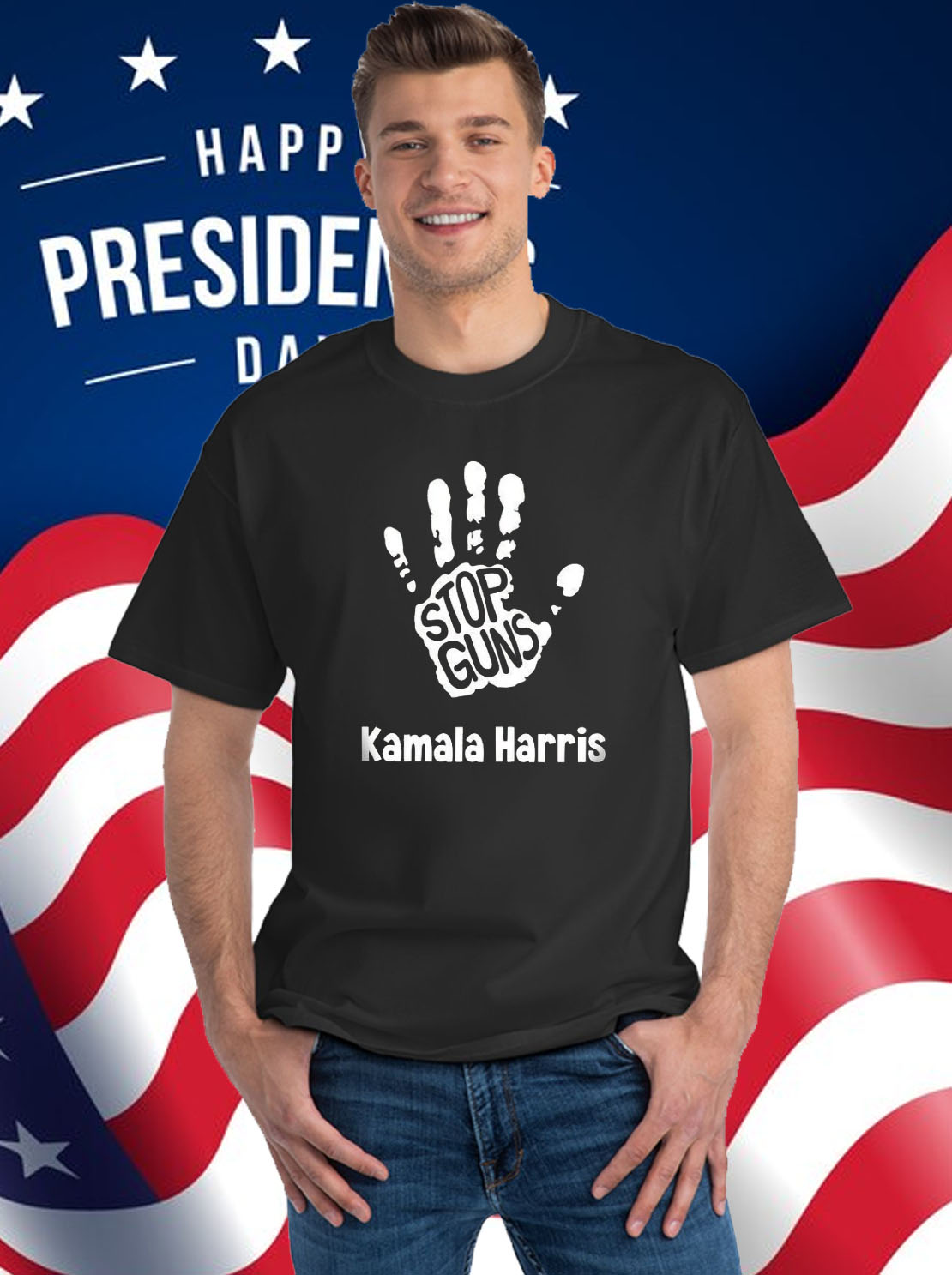 Bold and eye-catching “Kamala Harris 2024” and “End Gun Violence” graphics