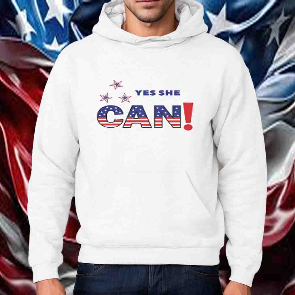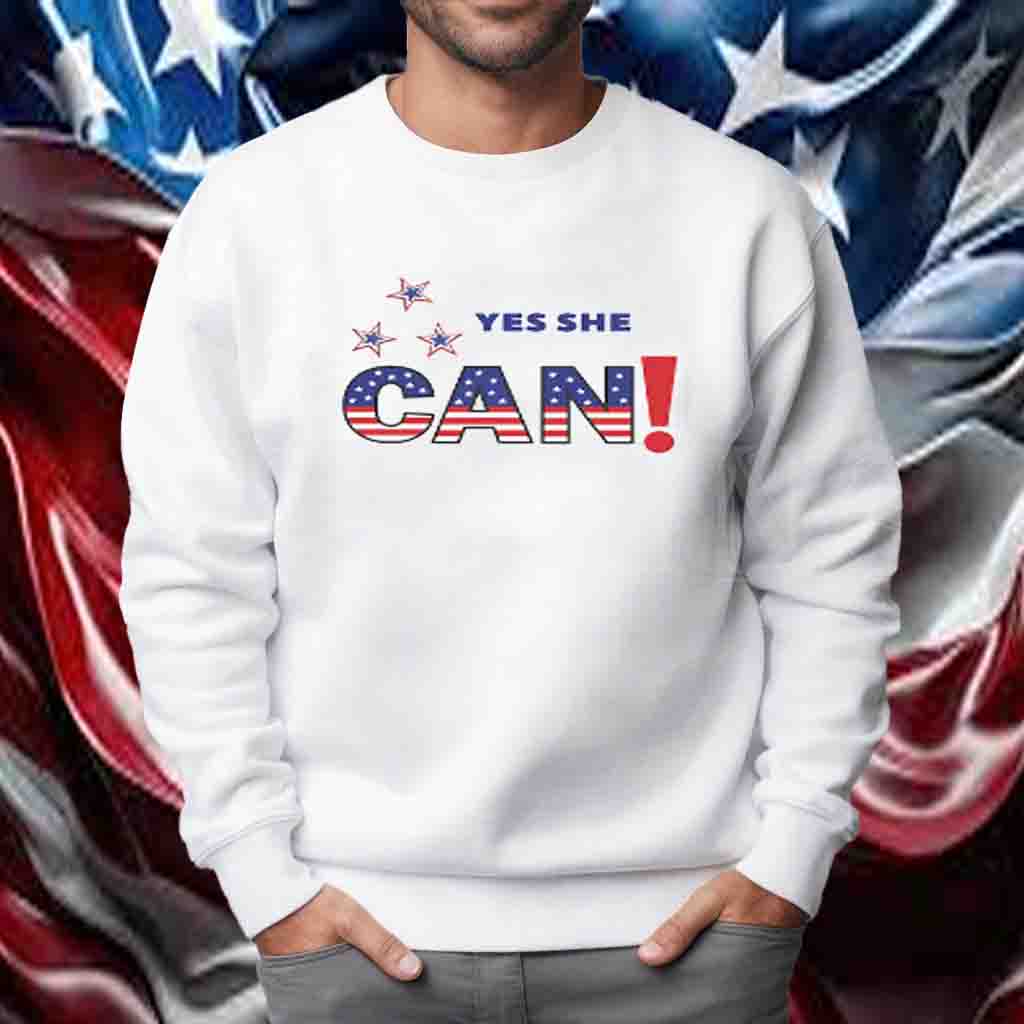 The shirt features a striking design that captures the essence of Kamala Harris’s unwavering spirit. The bold “Yes She Can” slogan is emblazoned across the chest, serving as a constant reminder of her determination and the limitless possibilities that lie ahead.