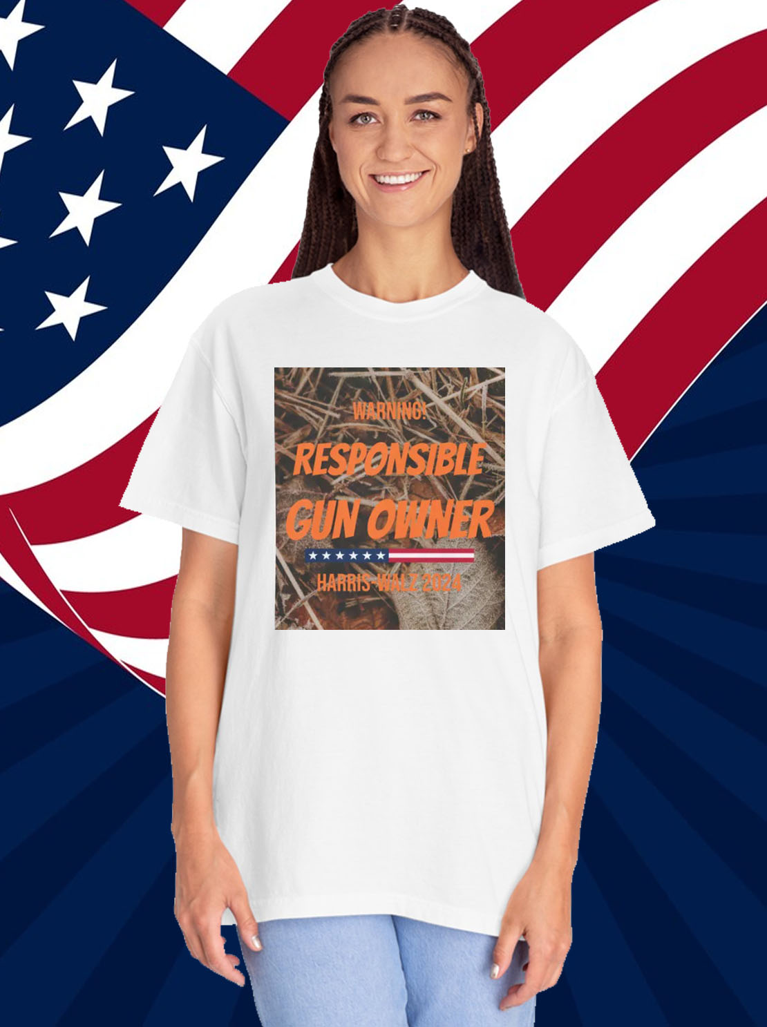 Bold Camouflage Print: Inspired by the military’s iconic camouflage pattern, this T-shirt symbolizes strength, resilience, and the unwavering determination of Kamala Harris.