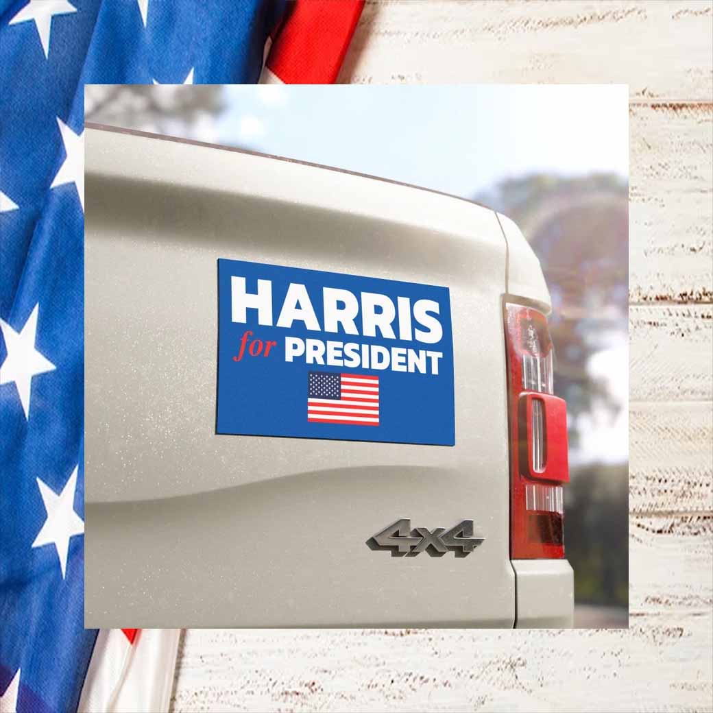 Join the movement and show your support for Kamala Harris in the 2024 presidential election. Order your bumper car magnet today and let your voice be heard!
