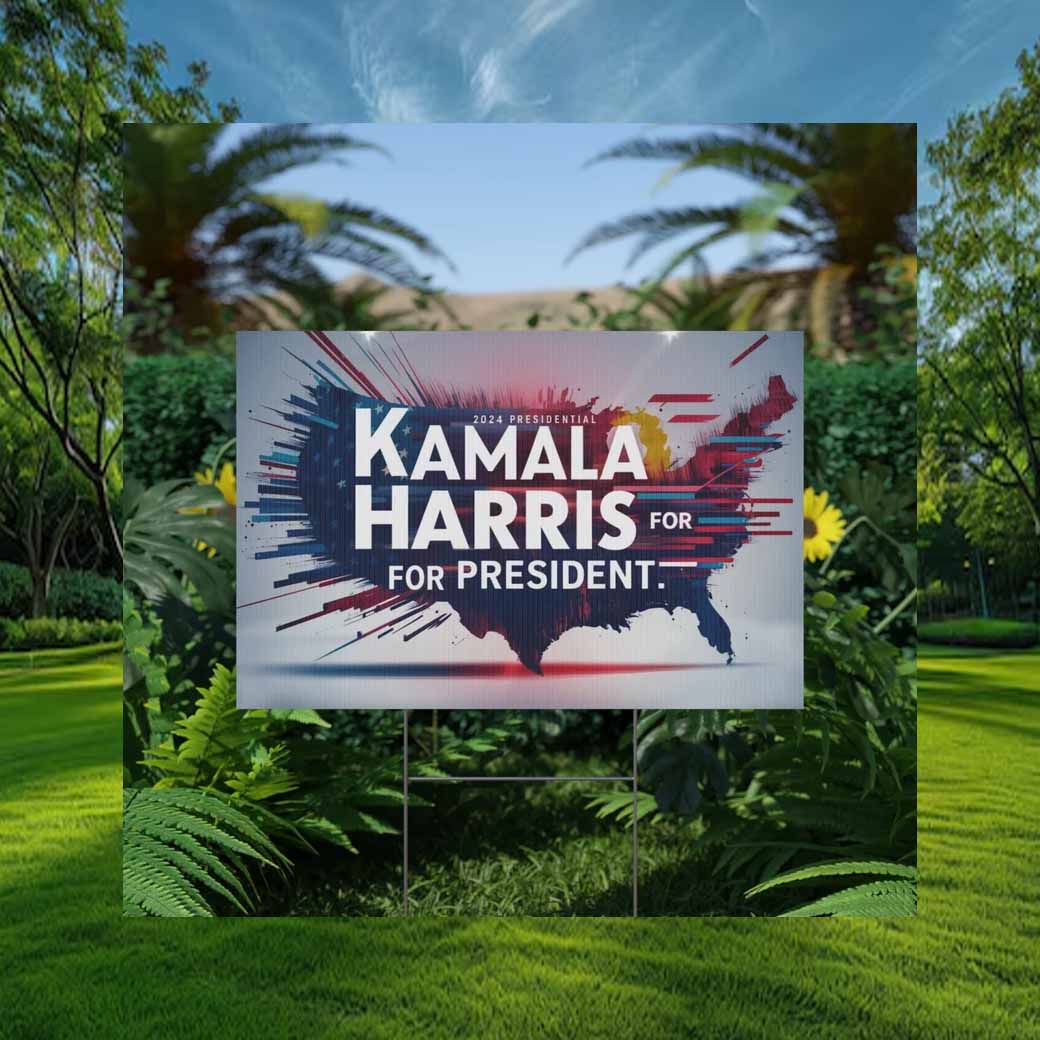Bold and Eye-Catching Design: The sign features a striking image of Kamala Harris with the words “Kamala Harris for President 2024” in bold, easy-to-read lettering.