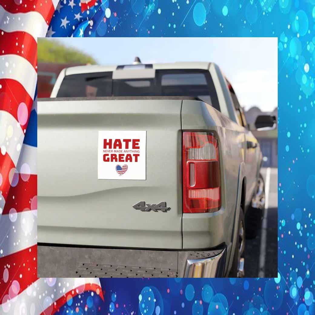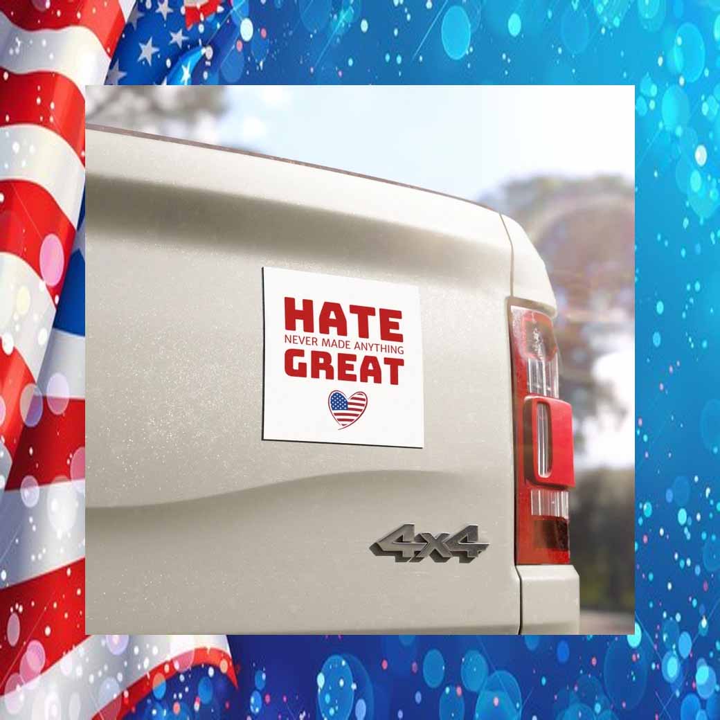 Join the movement for a better future and order your Kamala Harris “Hate Never Made Anything Great” car magnet today!