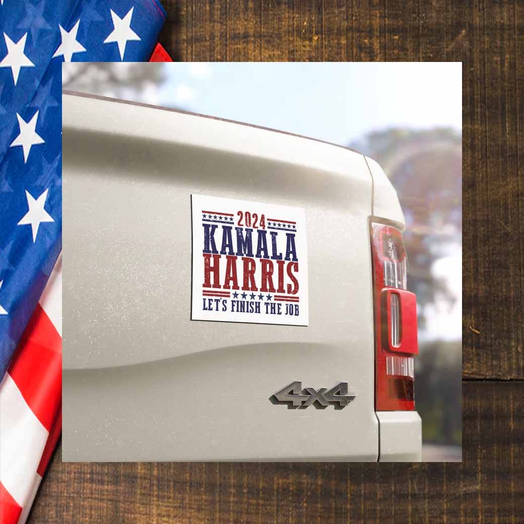 Show your support for Kamala Harris and her mission to finish the job of building a better America with this bold and eye-catching car magnet.