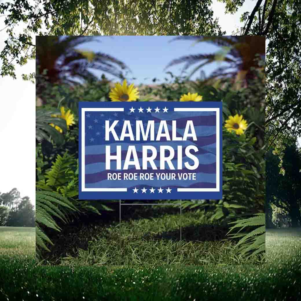 Join the fight for reproductive rights and make your voice heard. Order your Kamala Harris Roe Roe Roe Your Vote Yard Sign today and let your yard speak volumes!