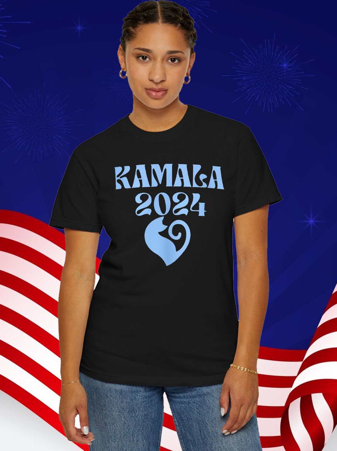 Vibrant print featuring Kamala Harris’s iconic image and the slogan “Cat Ladies for Kamala”