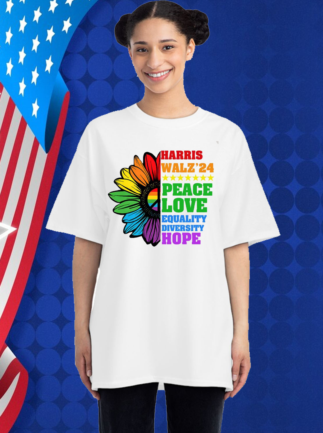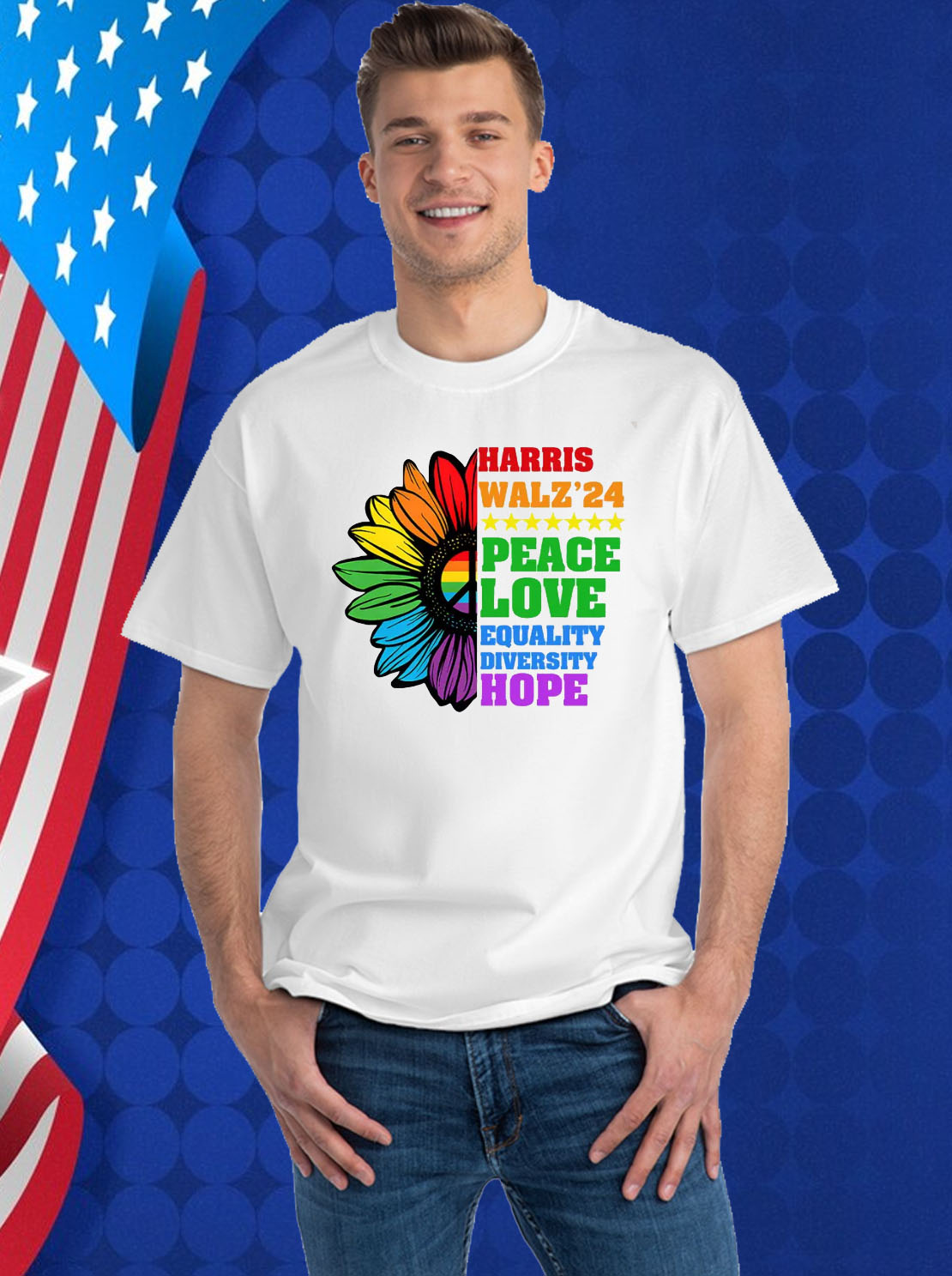 Join the movement for a brighter future. Order your Kamala Harris Tim Walz 2024 Peace LGBT Shirt today and let your voice be heard!