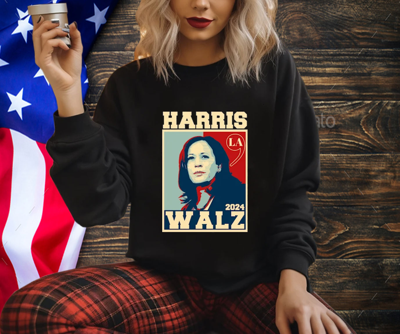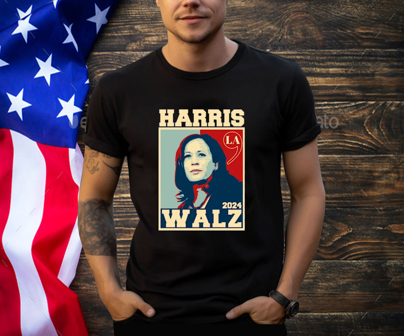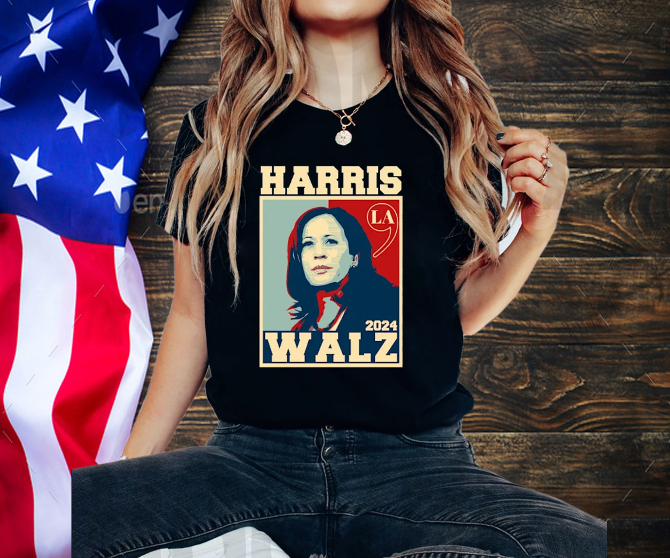 The shirt features a striking design that captures the essence of the Harris-Walz campaign. The vibrant colors and bold typography create a visually captivating statement that will turn heads wherever you go.