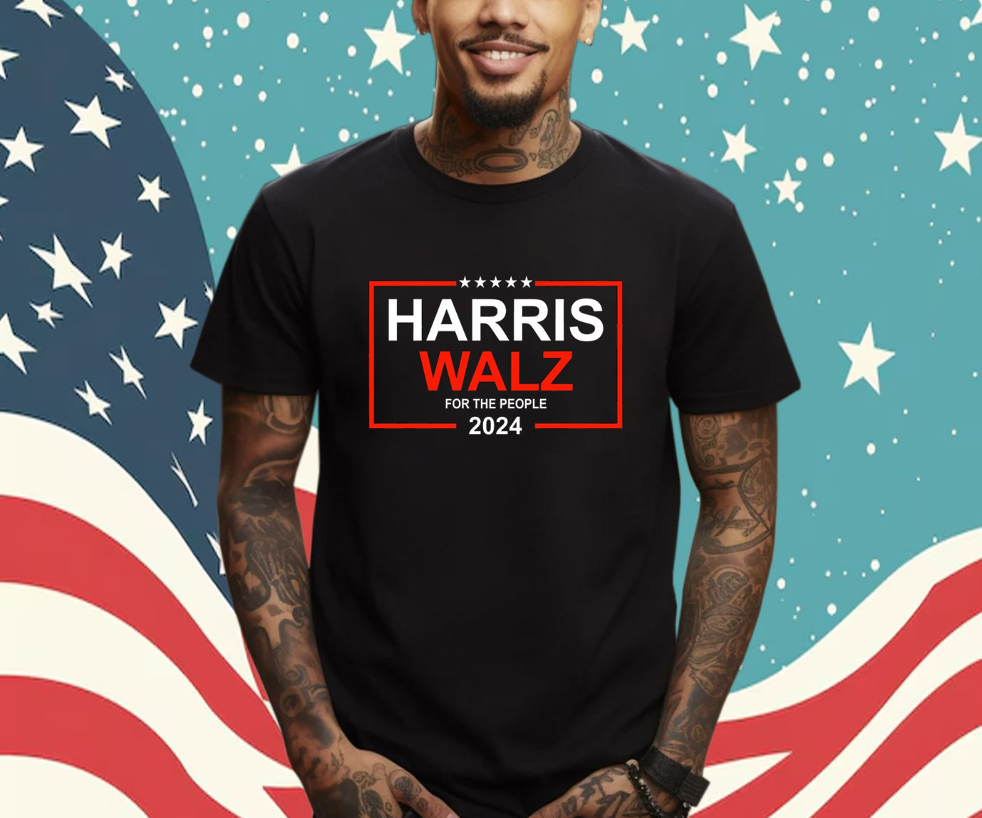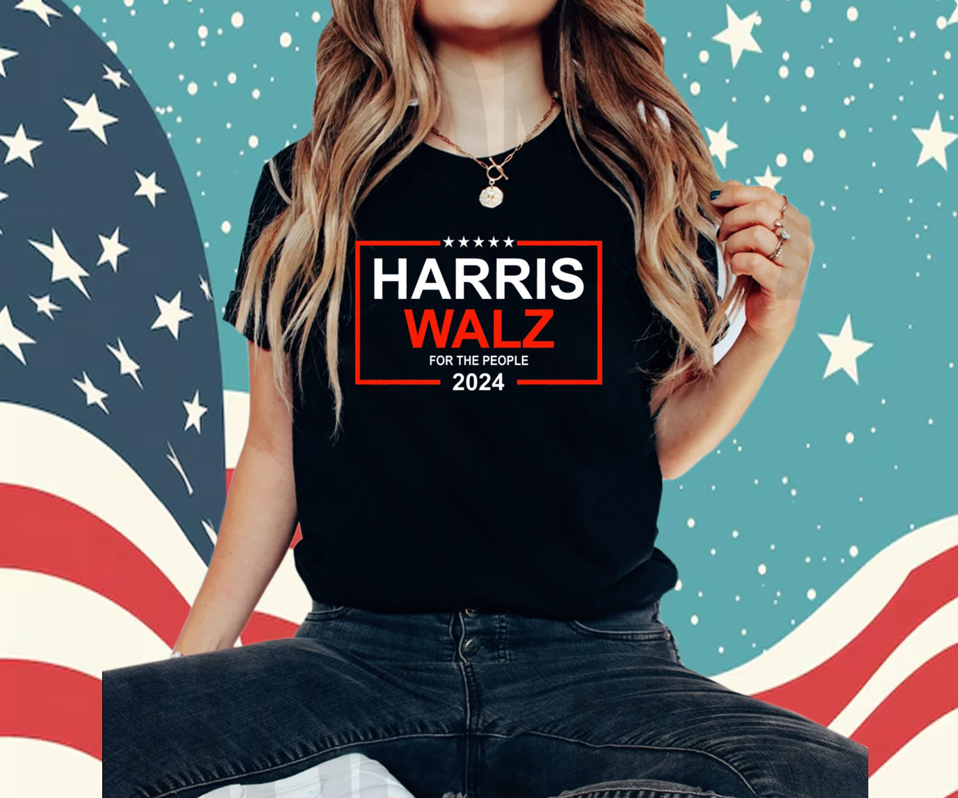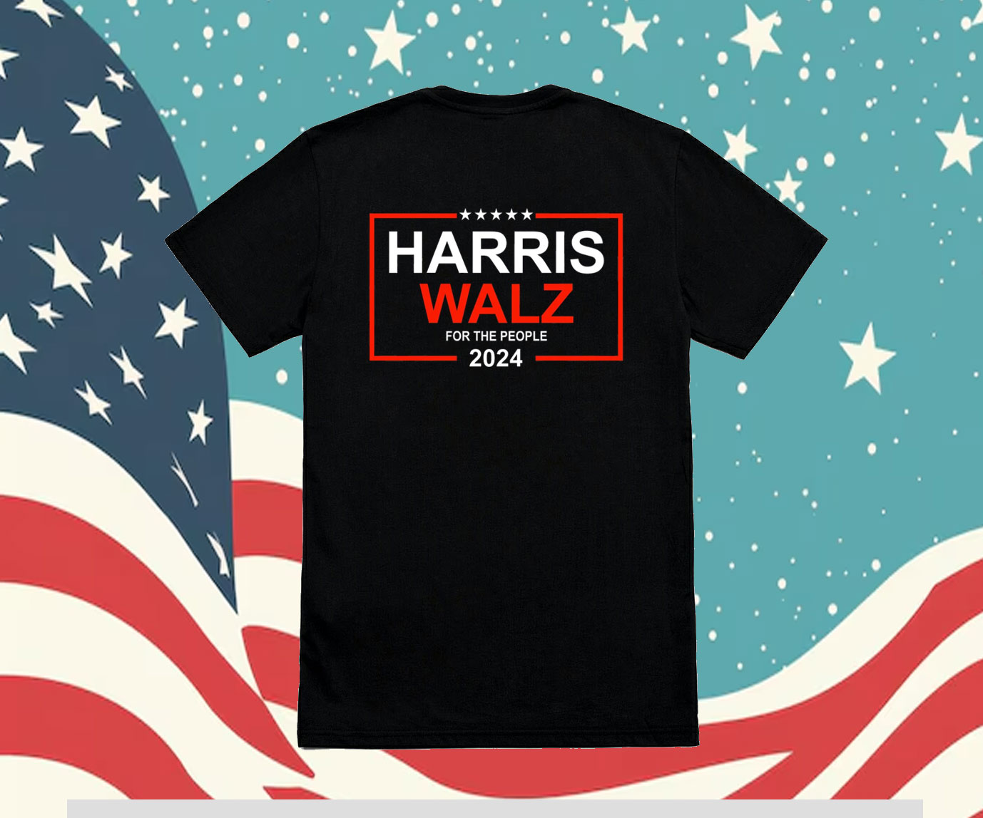 Bold “Harris Walz 24” print in eye-catching colors