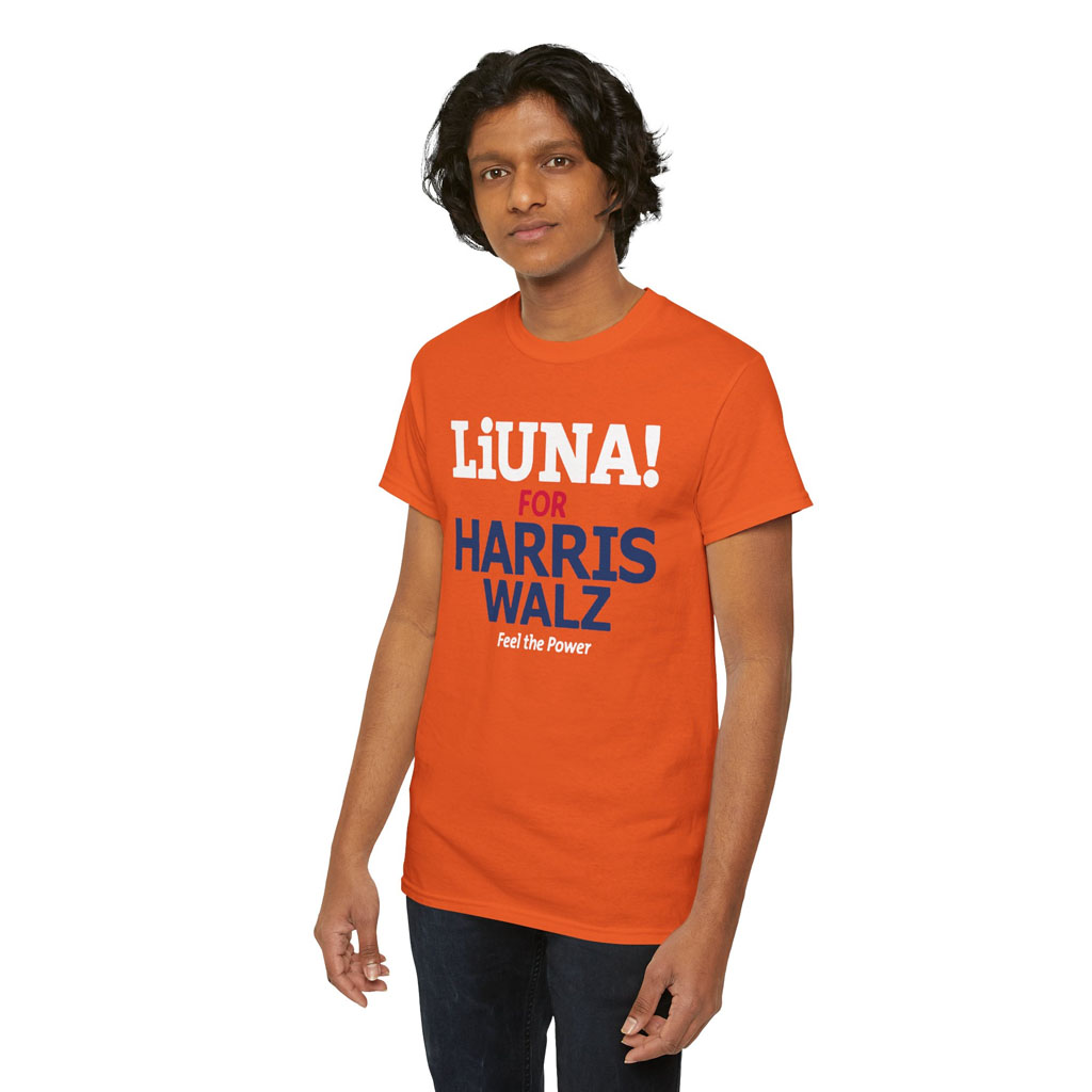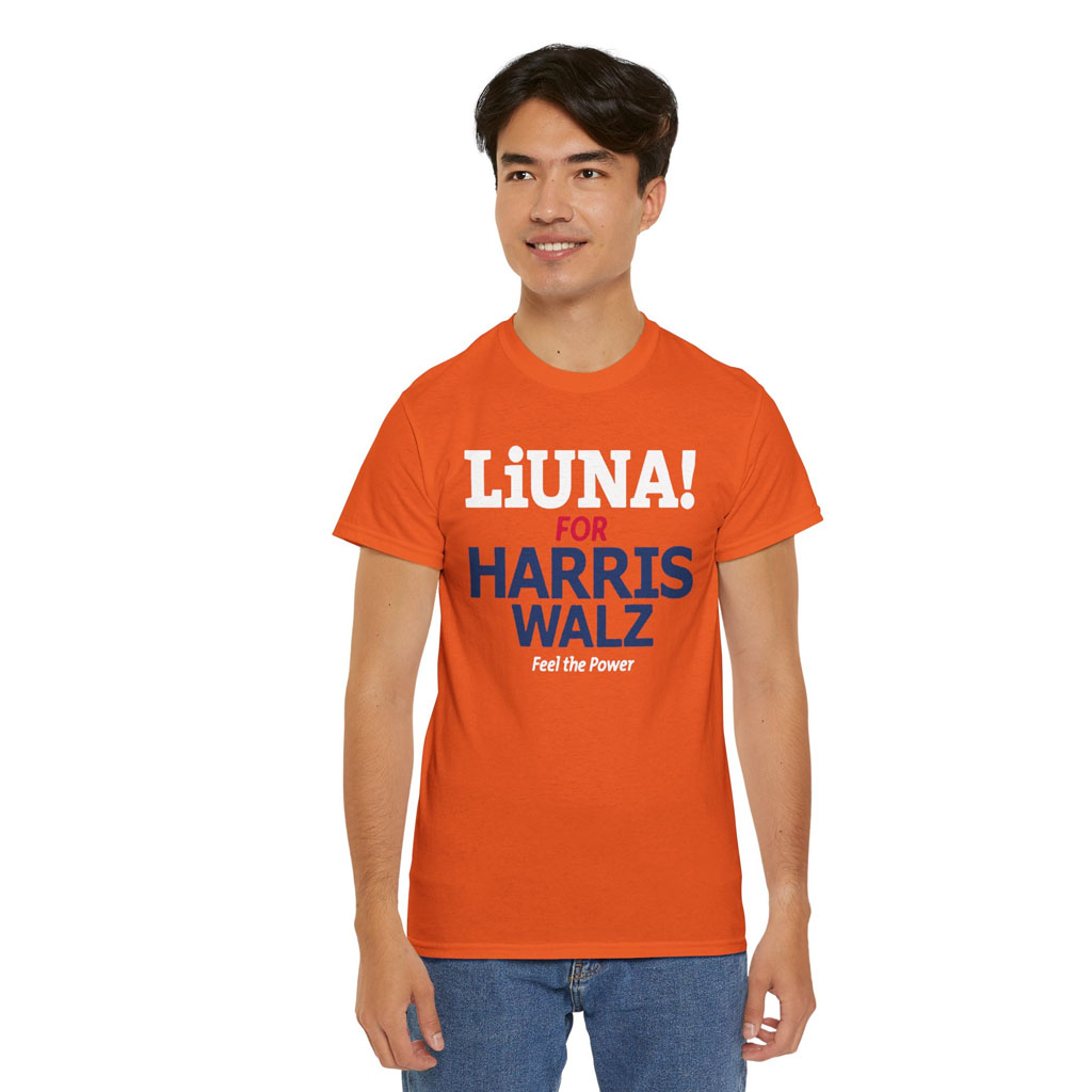 Show your support for Kamala Harris and Joe Biden with this powerful t-shirt. The bold graphic features the words “Kamala Hq Liuna For Harris Walz Feel The Power” in vibrant colors, making a statement wherever you go.