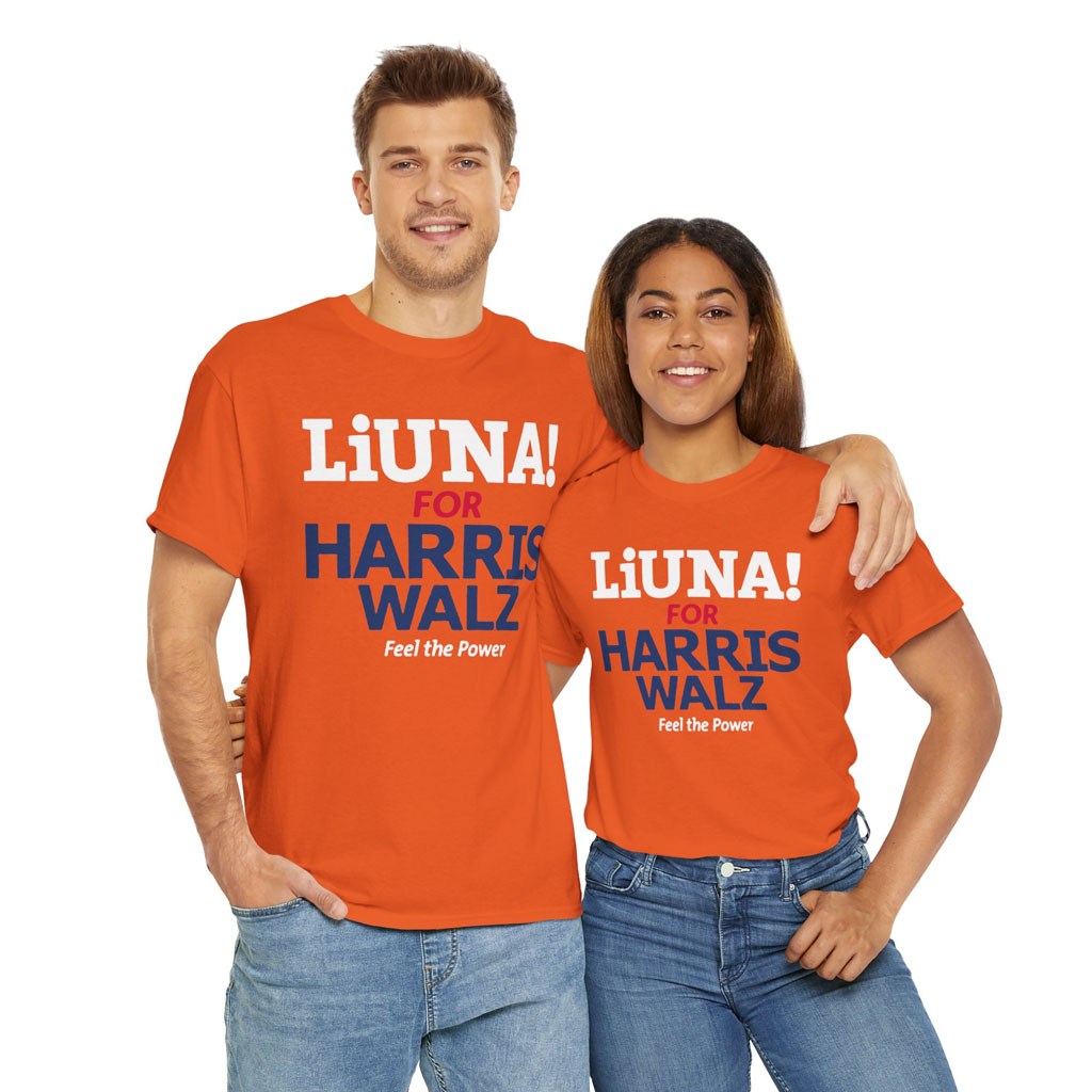 Bold graphic with “Kamala Hq Liuna For Harris Walz Feel The Power”