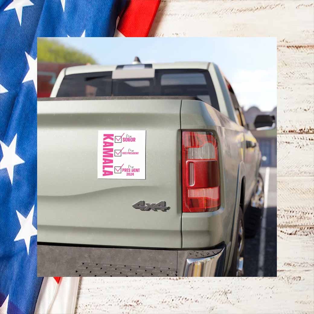 Join the movement and show your support for Kamala Harris today. Order your “Kamala My Soror My Vice President My President 2024” car magnet now and let your vehicle speak volumes about your political beliefs and aspirations.