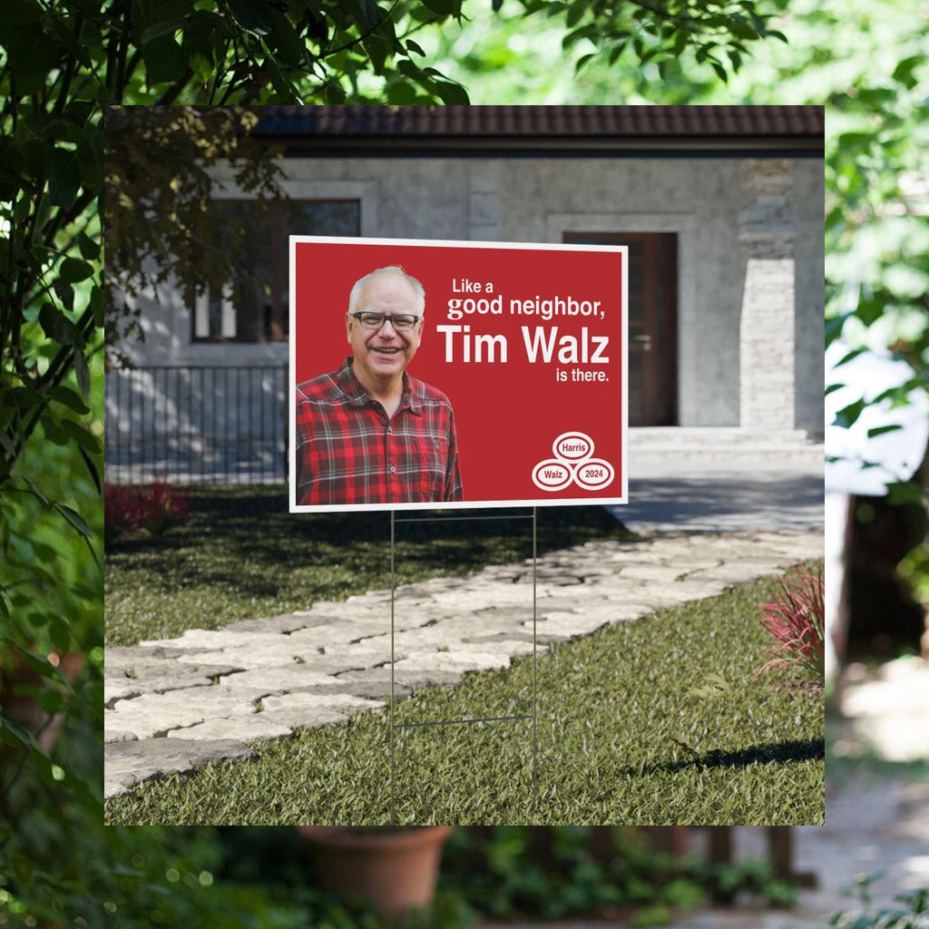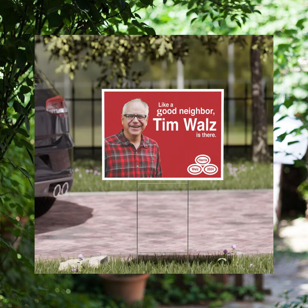 Like a Good Neighbor Tim Waltz is There. Kamala Harris Vote Democrat 2024 Save Democracy Parody Funny Yard Sign