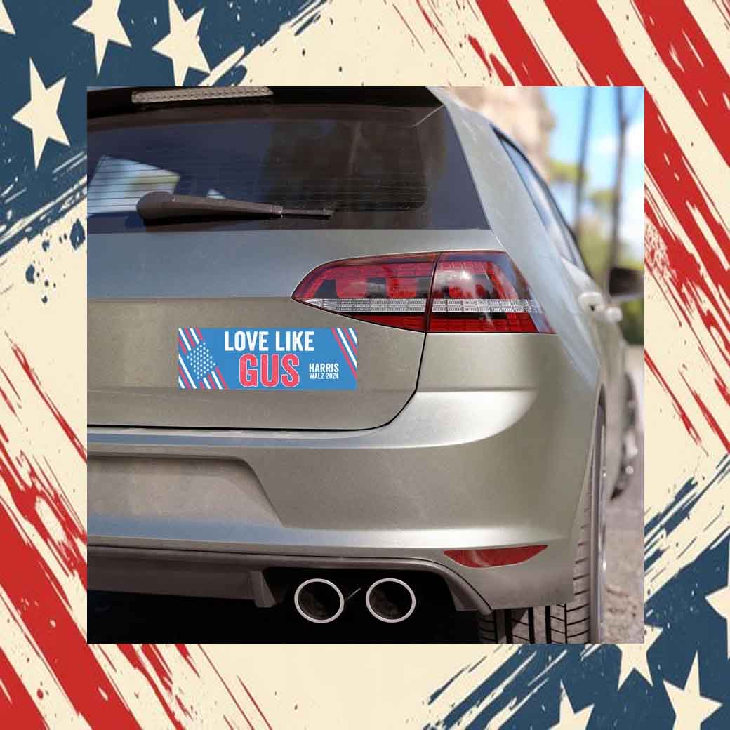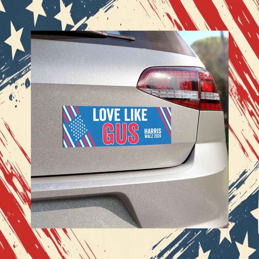 Bold and Eye-Catching: The vibrant red and white design with the iconic “Love Like Gus” logo is sure to turn heads and spread joy wherever you go.