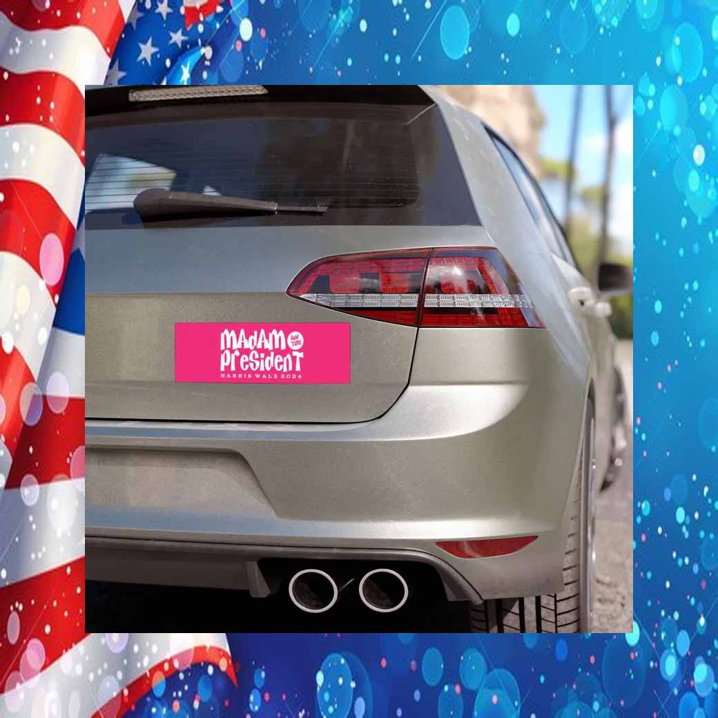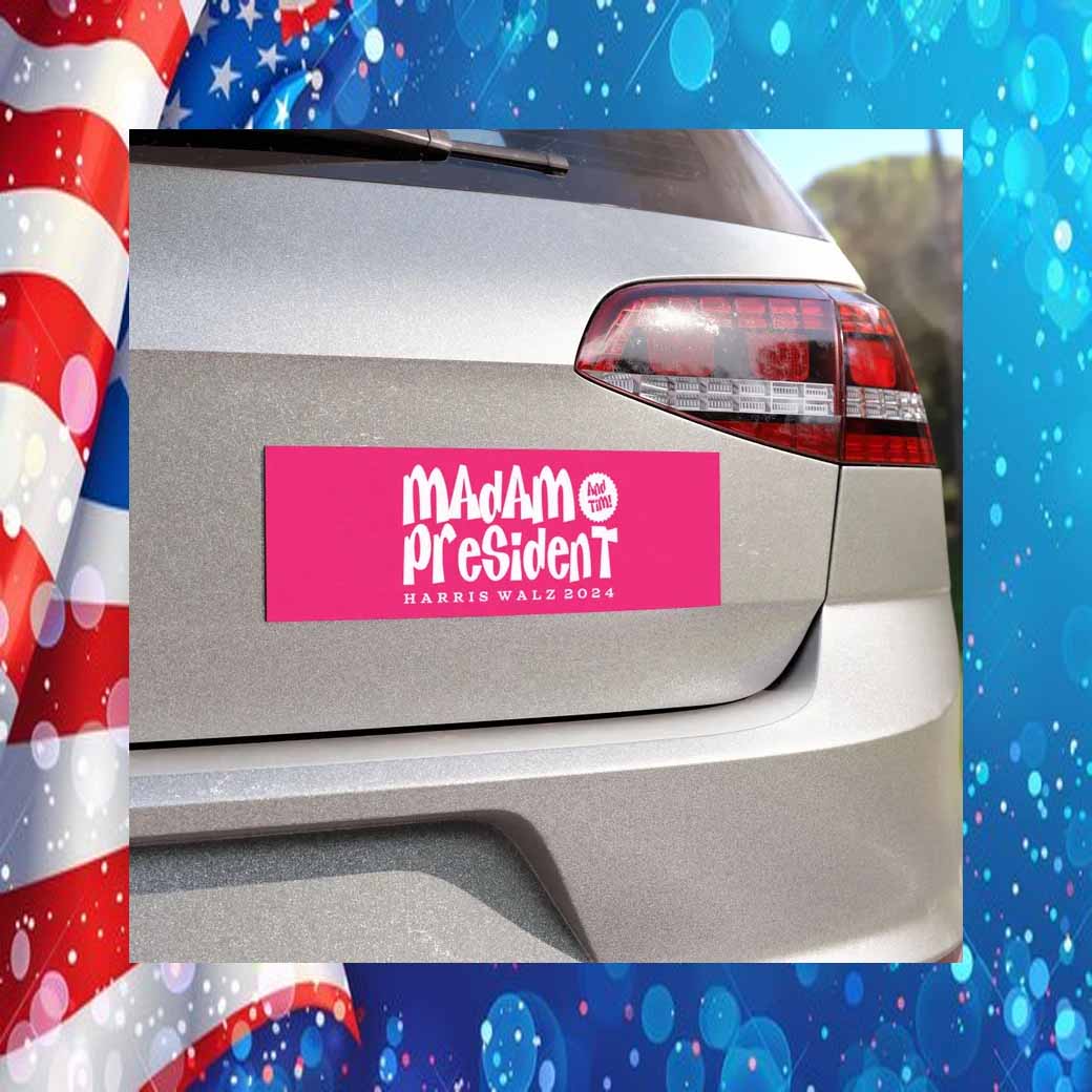 Our Madam President (And Tim) car magnet is a symbol of hope, progress, and the power of representation. It’s a way to show the world that you believe in the future and that you stand with those who are making a difference.