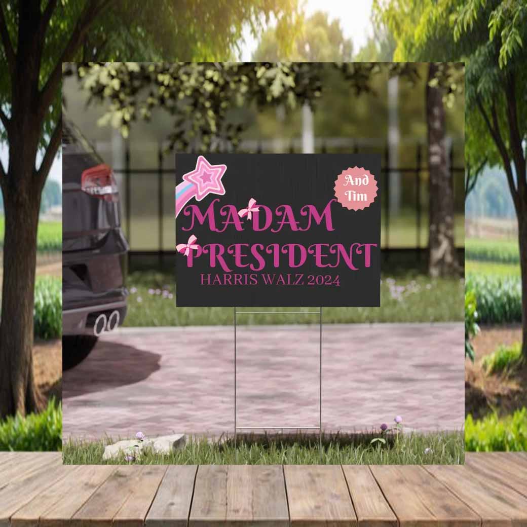 Show your support for the dynamic duo of Madam President Harris and Tim in the 2024 election with this eye-catching yard sign!
