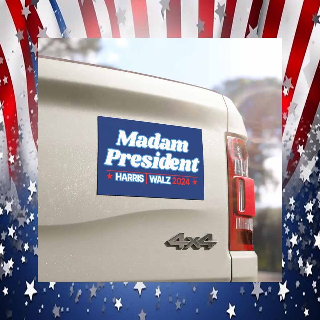 Join the movement and proudly display your support for Madam President Harris and Tina Walz with our exclusive 2024 car magnet. Together, we can make history and create a better future for all.