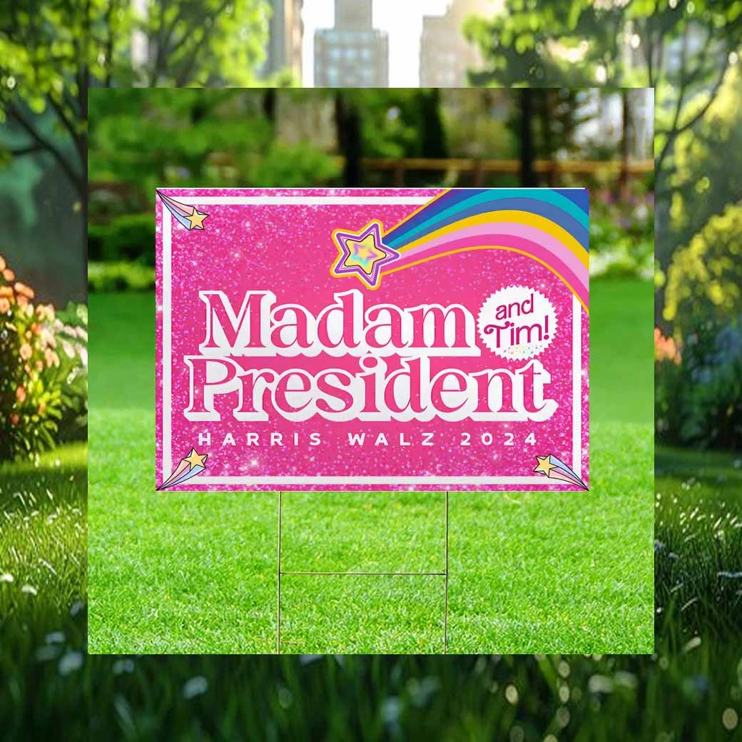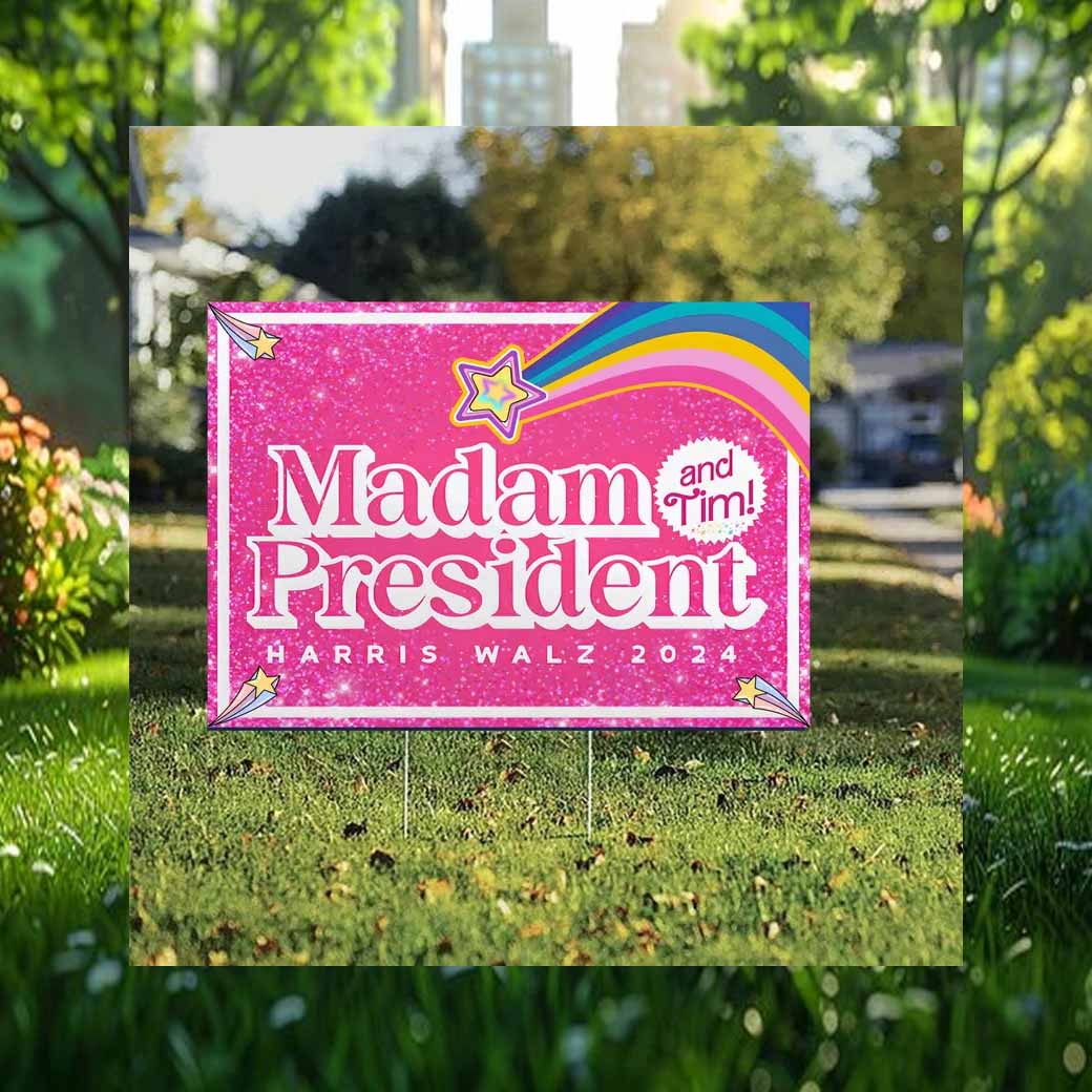 Join the movement and show your support for Madam President, Harris Walz. Order your pink lawn yard sign today and make a statement that will inspire your community and beyond.