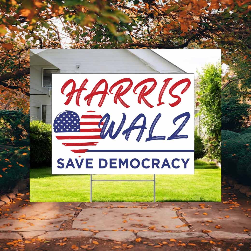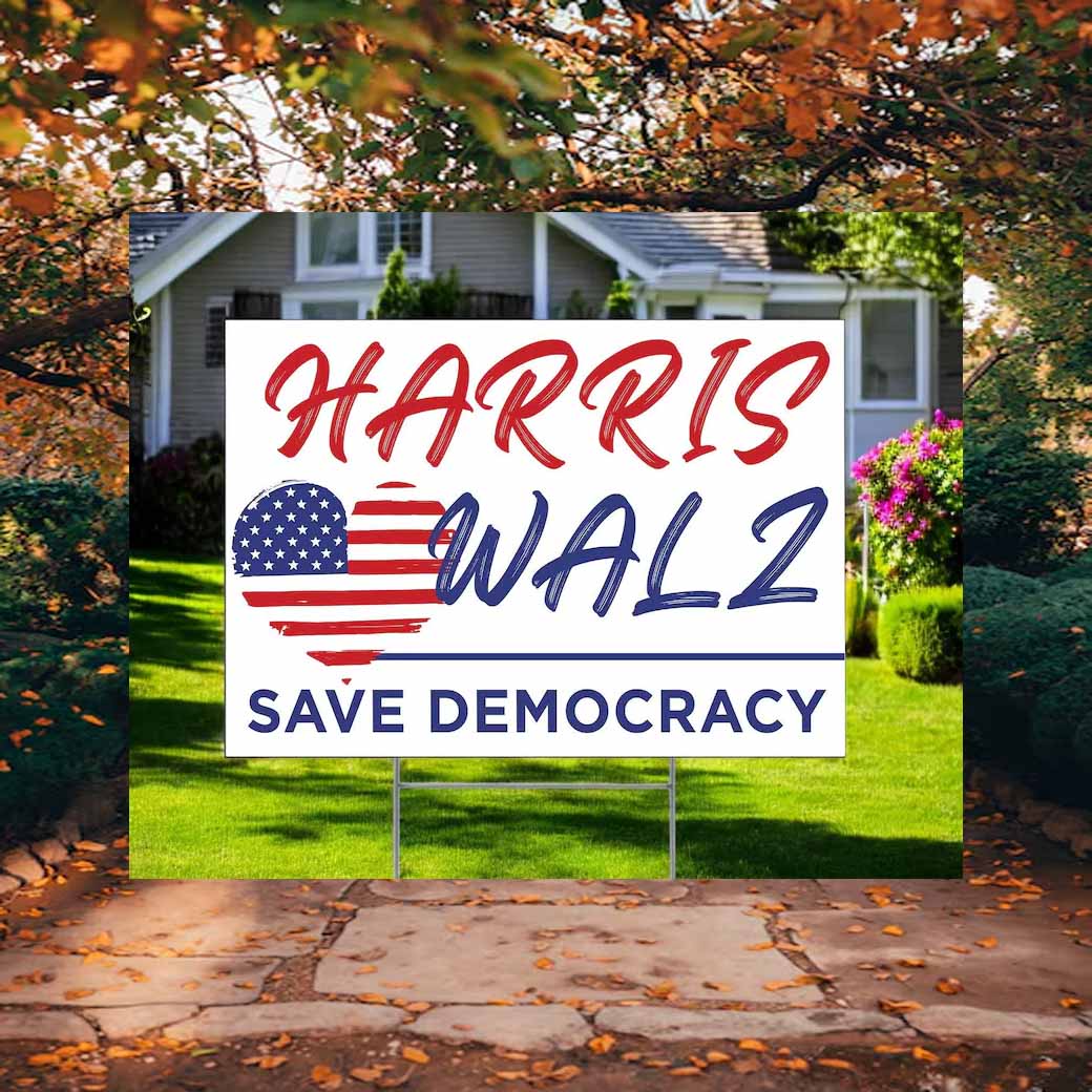 Join the movement to save democracy. Order your Harris Walz Save Democracy Yard Sign today and make your voice count!