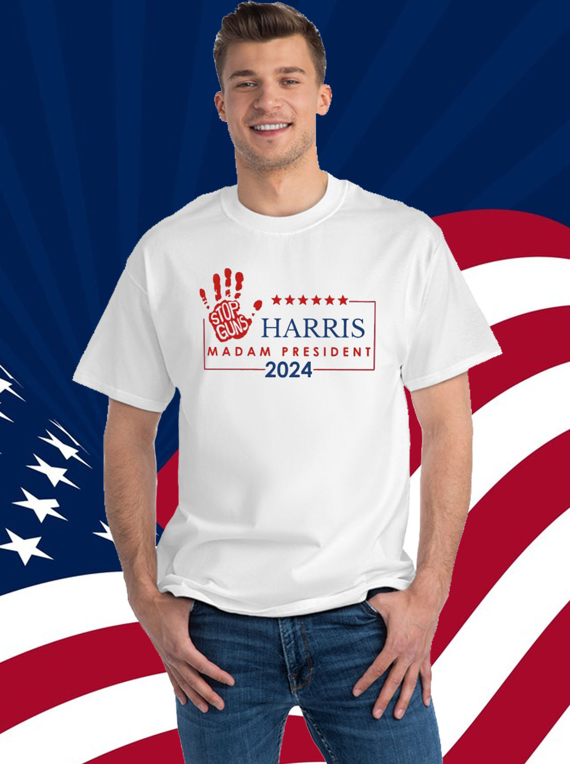 Join the fight against gun violence today. Order your Madam President Kamala Harris Stop Gun Shirt and show the world that you stand with Vice President Harris and the countless victims of gun violence. Together, we can create a safer future for all.